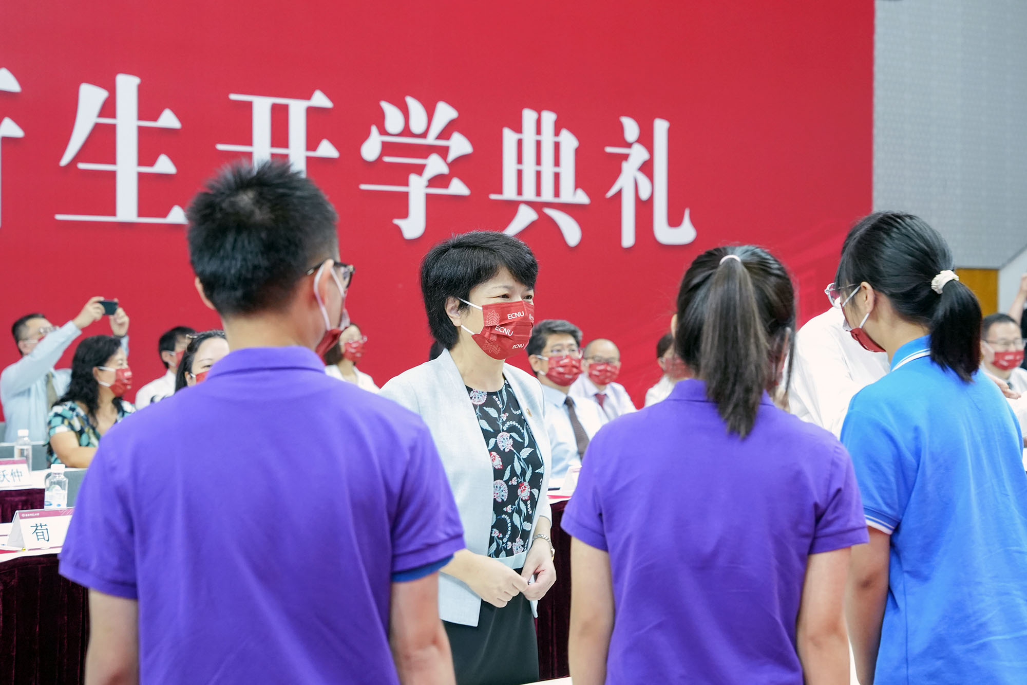 戴上校徽正式成为华东师大人 校党委书记梅兵为新生佩戴校徽