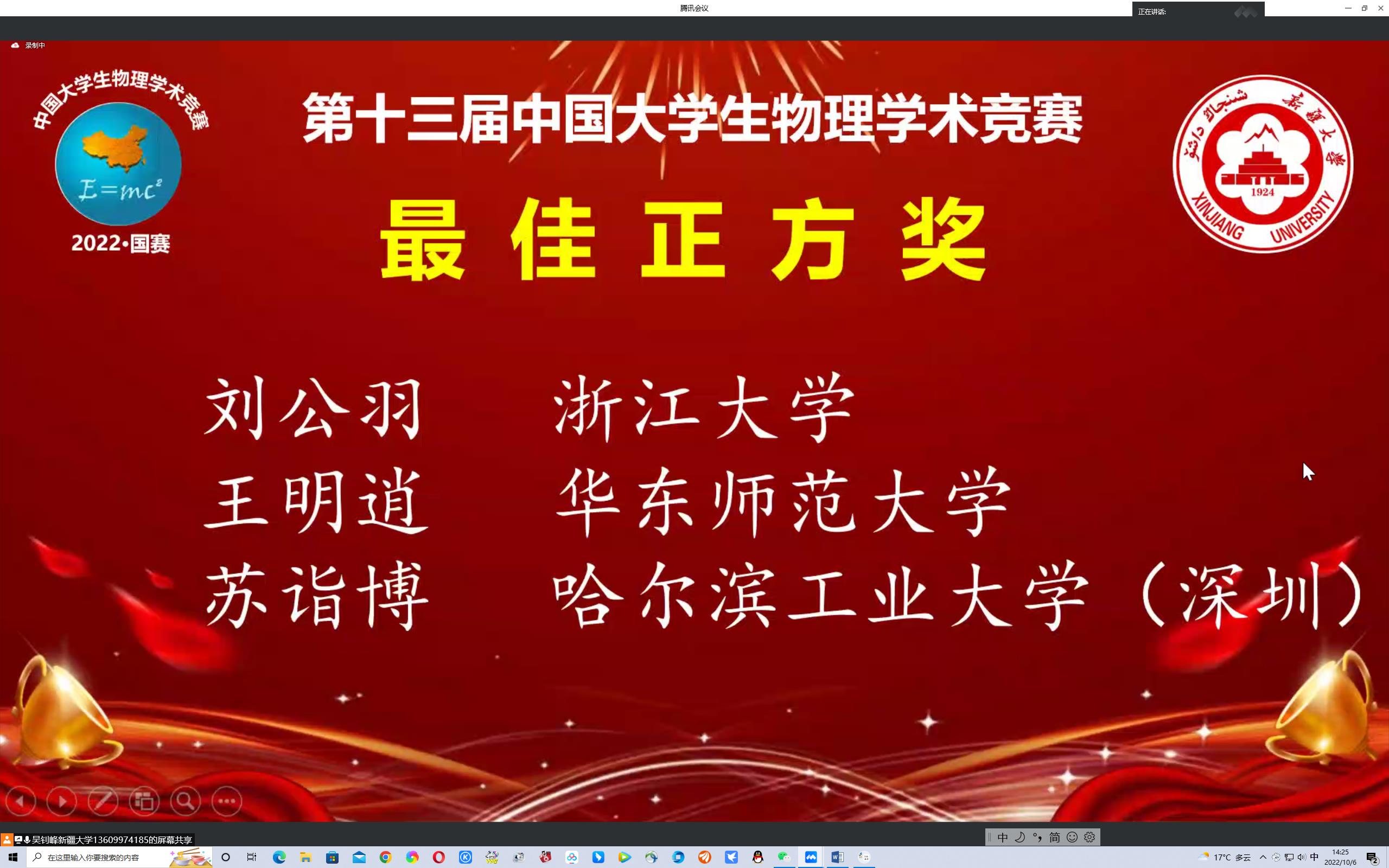 2022年第十三届中国大学生物理学术竞赛华东师大代表队