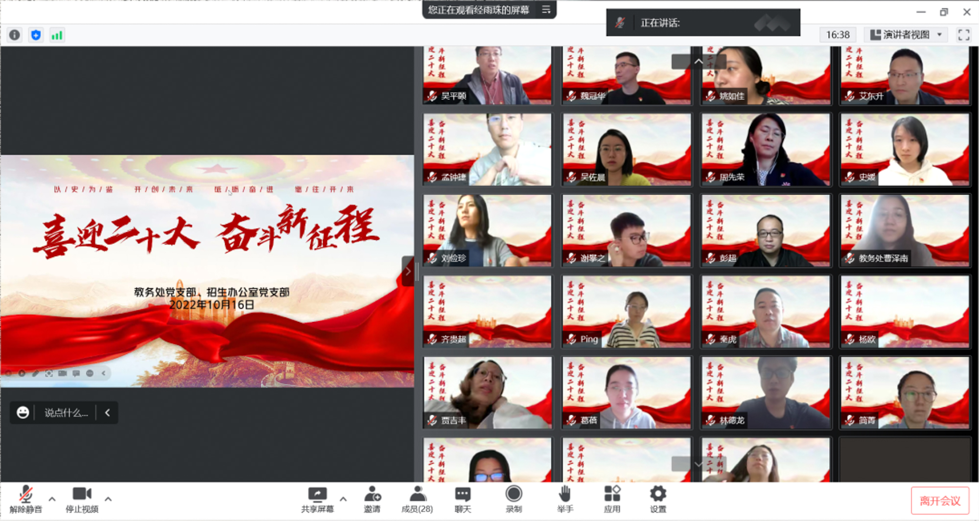 澳门永利皇宫官网入口党委中心组成员共同收看二十大开幕会直播