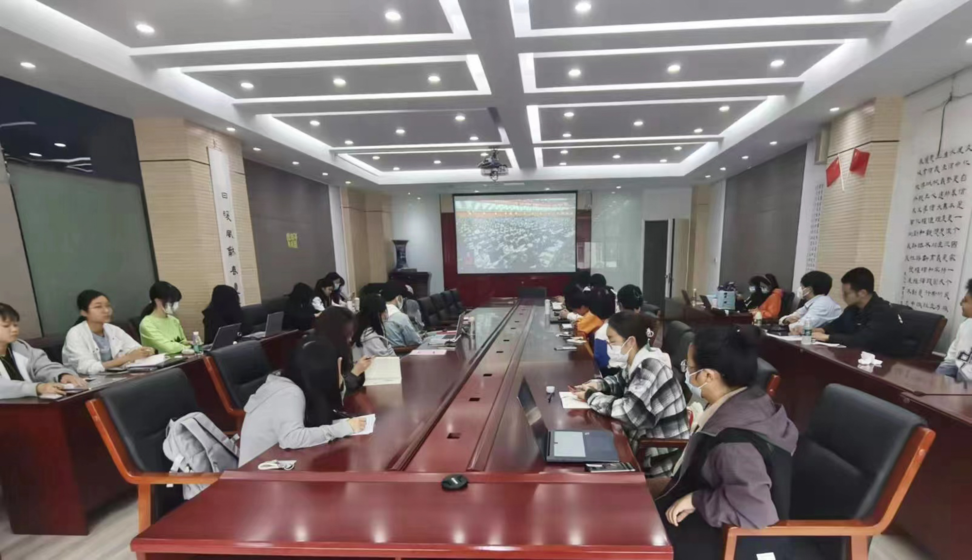 澳门永利皇宫官网入口党委中心组成员共同收看二十大开幕会直播,并在会后第一时间举行学习扩大会,交流思考体会,深入研讨如何结合教育系统特点和学校工作实际,将学习贯彻党的二十大精神切实落到推动学校各项事业发展的实际中。