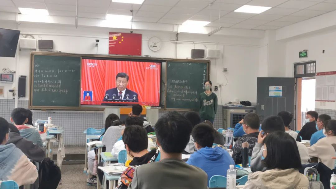 在郑州一中实习2019级物理学(师范)专业李宜阳同学,组织高二学生集体观看党的二十大开幕式