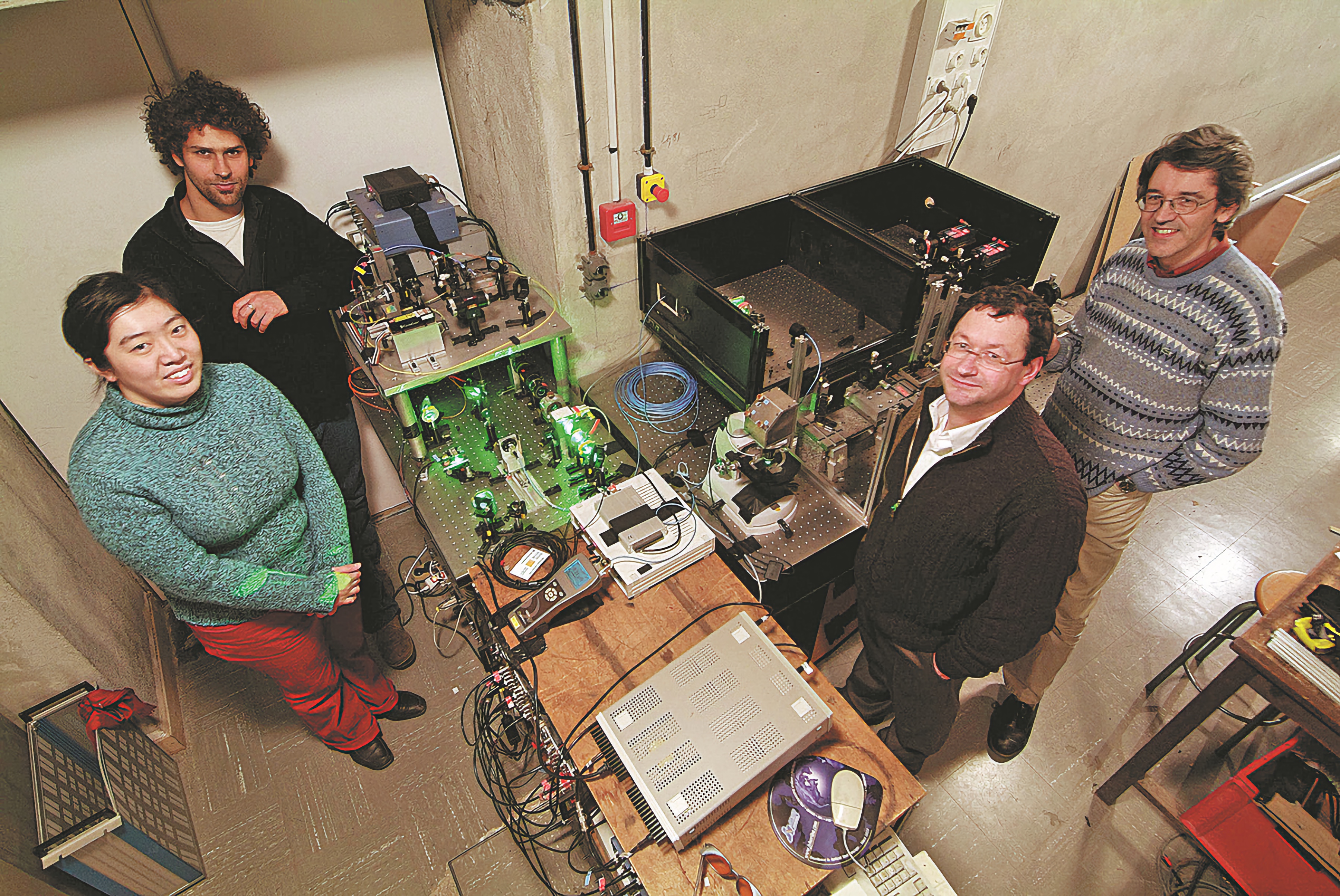 2007年,中法项目第一届物理专业博士生武愕与导师在单光子延时-选择实验平台