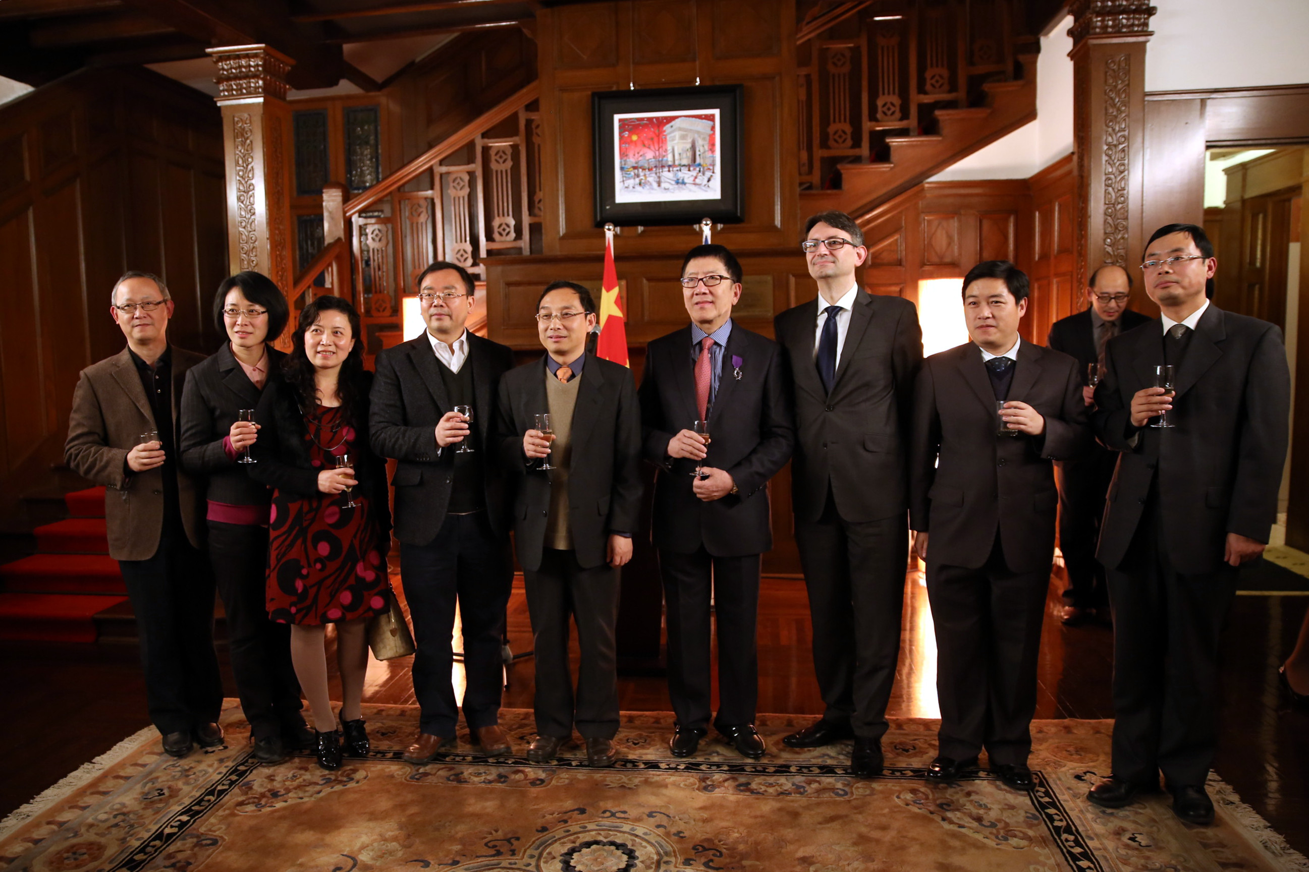 2015年12月,法国驻沪时任总领事Axel CRUAU先生向我校原计算机科学与软件工程学院院长何积丰院士颁发法国棕榈叶教育骑士勋章