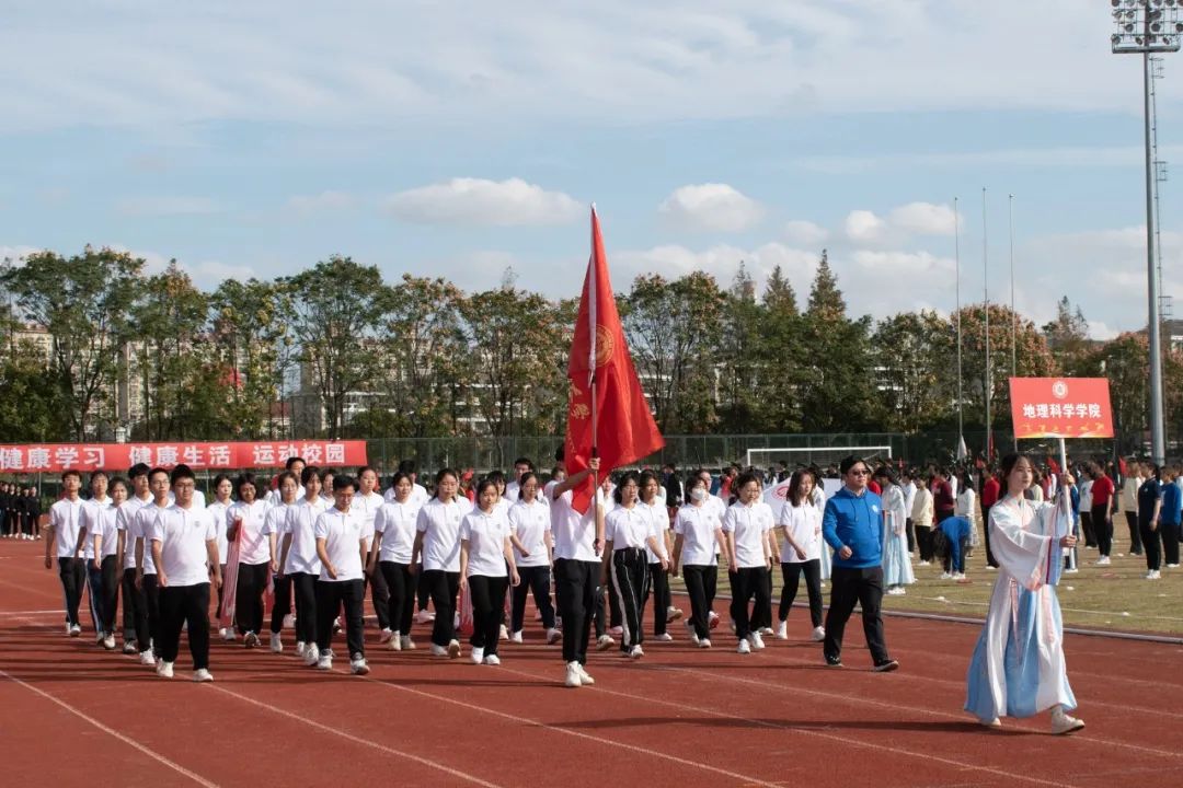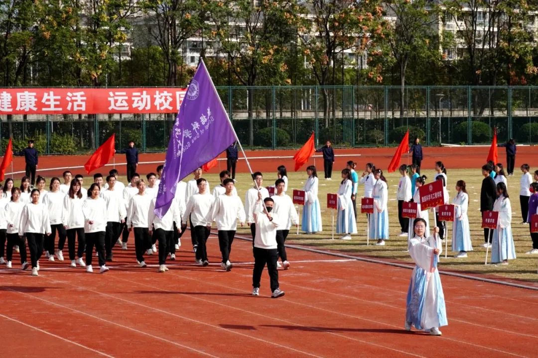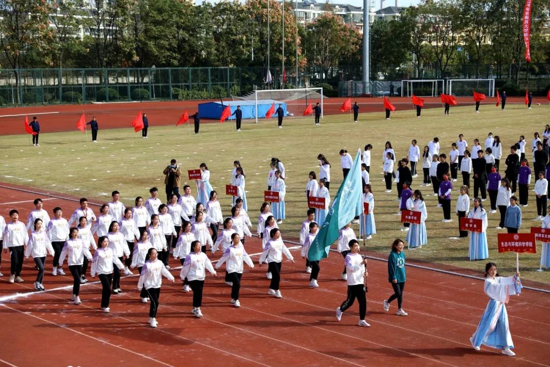 本届运动会为期两天,运动员们将在校运会30余项比赛中展开角逐。还没看够?让我们近距离感受现场!(按入场顺序)