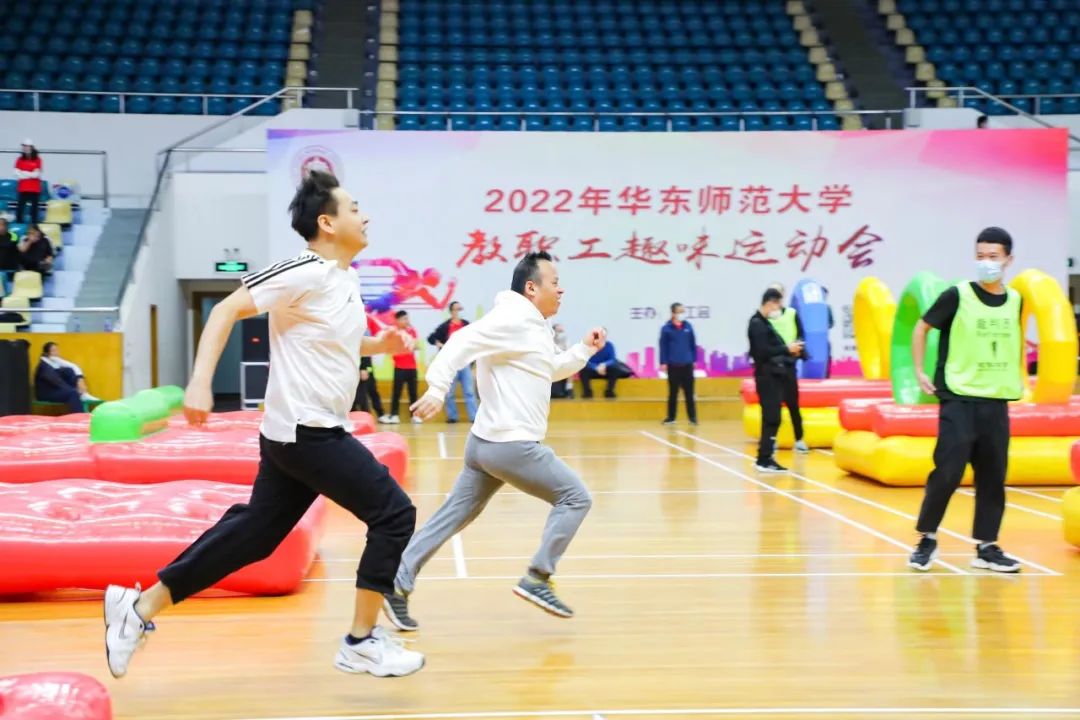 今天普陀校区的体育馆也热力十足,2022年华东师大教职工趣味运动会在此举行,六百余名教职工同场竞技、欢乐无限。在障碍闯关赛、陆地龙舟、雷霆战鼓三大趣味项目中,共决出一等奖14个、二等奖22个、三等奖39个。教职工广播操比赛将后续通过视频参赛的形式在线上举行。
