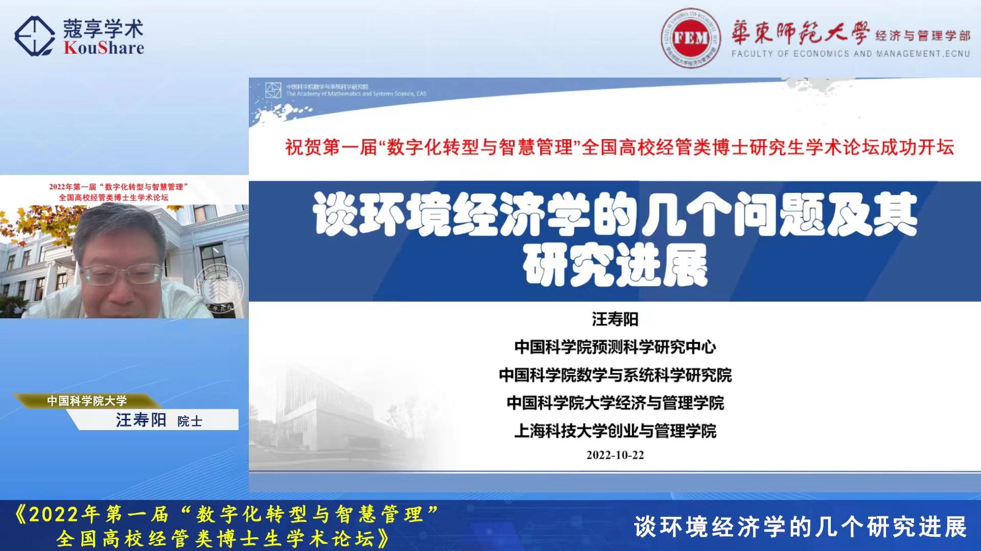 10月22-23日,由华东师大研究生院主办,华东师大经济与管理学部、工商管理学院、统计交叉科学研究院和《系统管理学报》编辑部联合承办的2022年首届“数字化转型与智慧管理”全国高校经管类博士生学术论坛在线举行。论坛由经管学部统计交叉科学研究院副院长、中国运筹学会医疗运作管理分会副理事长杜刚教授发起和策划组织,吸引了来自全国多所院校的累计1.2万余名师生在线观看和研讨。