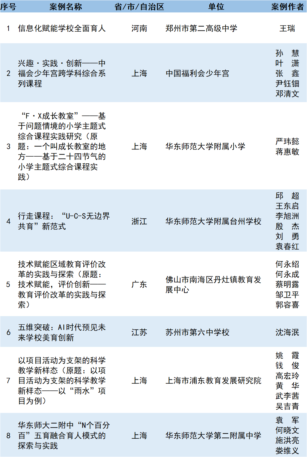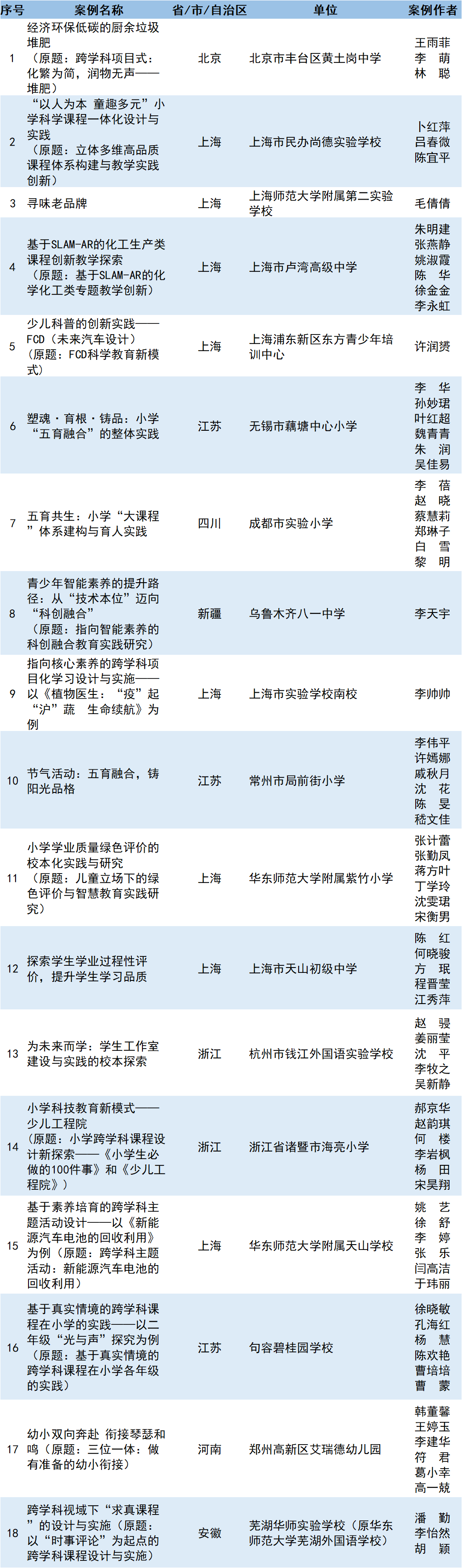 首届澳门永利皇宫官网入口“中国基础教育卓越原创案例展评”获奖名单
