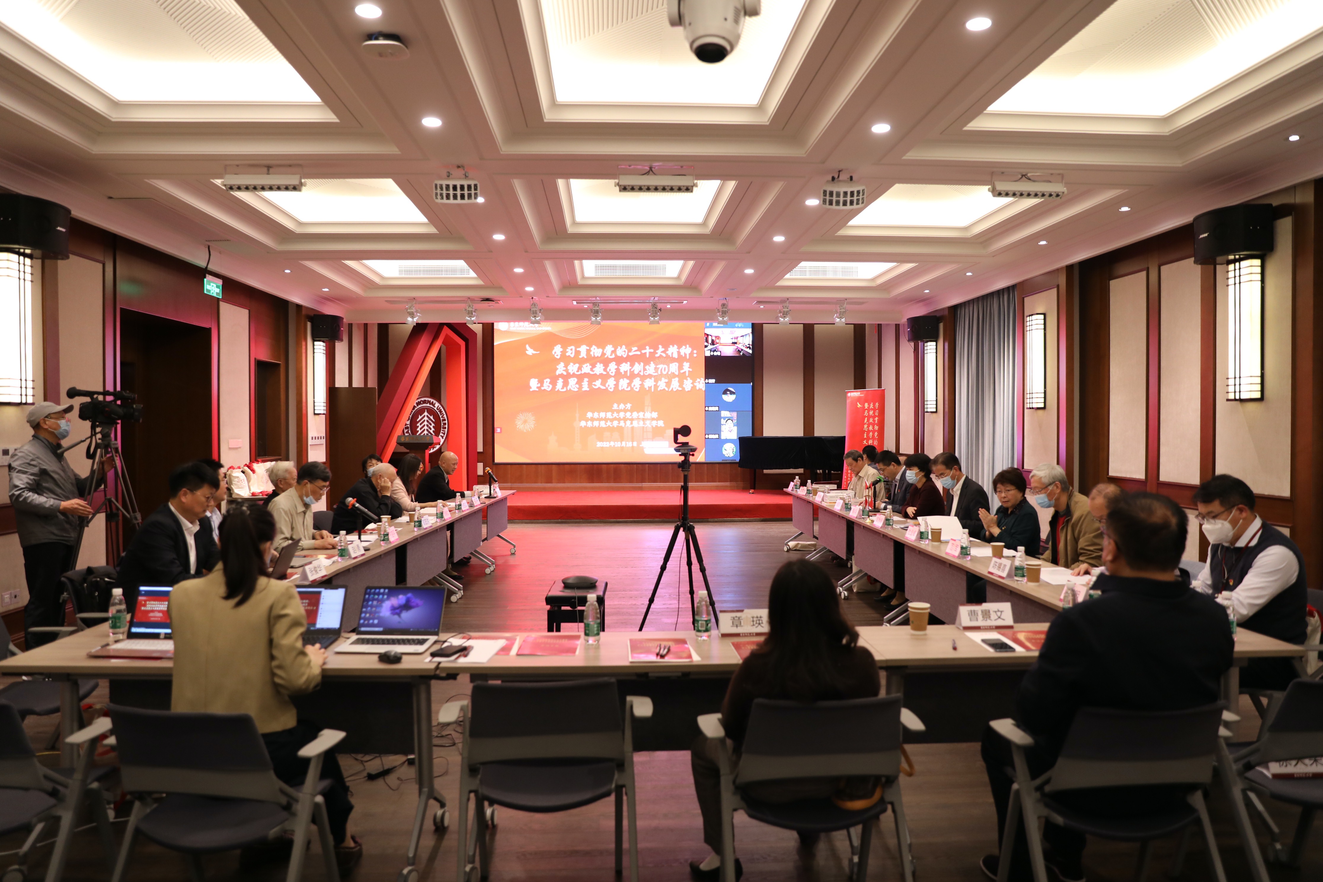 为深入学习宣传贯彻党的二十大精神,推动立德树人事业提质增效,推动学科发展攀高行远。2022年10月16日下午,由澳门永利皇宫官网入口党委宣传部、马克思主义学院共同主办的“学习贯彻党的二十大精神:庆祝政教学科创建70周年暨马克思主义学院学科发展咨询会”以线上线下相结合的形式举办。来自上海高校、研究机构及政府部门的专家学者与会研讨。会议由华东师大副校长,党委宣传部部长、马克思主义学院院长顾红亮主持。