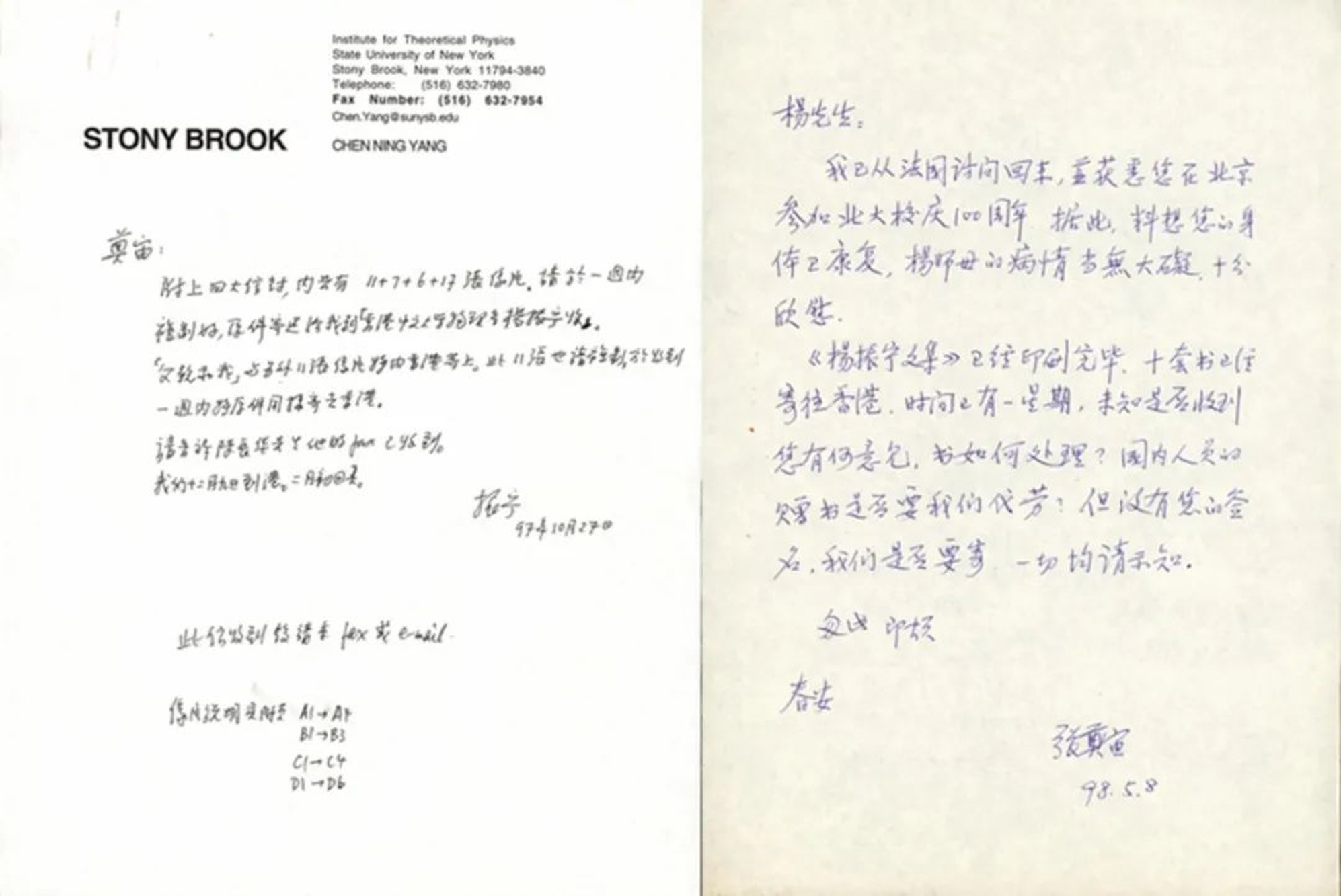 而杨振宁、张奠宙为出版文集的往来书信及传真,就成了历史的见证和永恒的回忆。