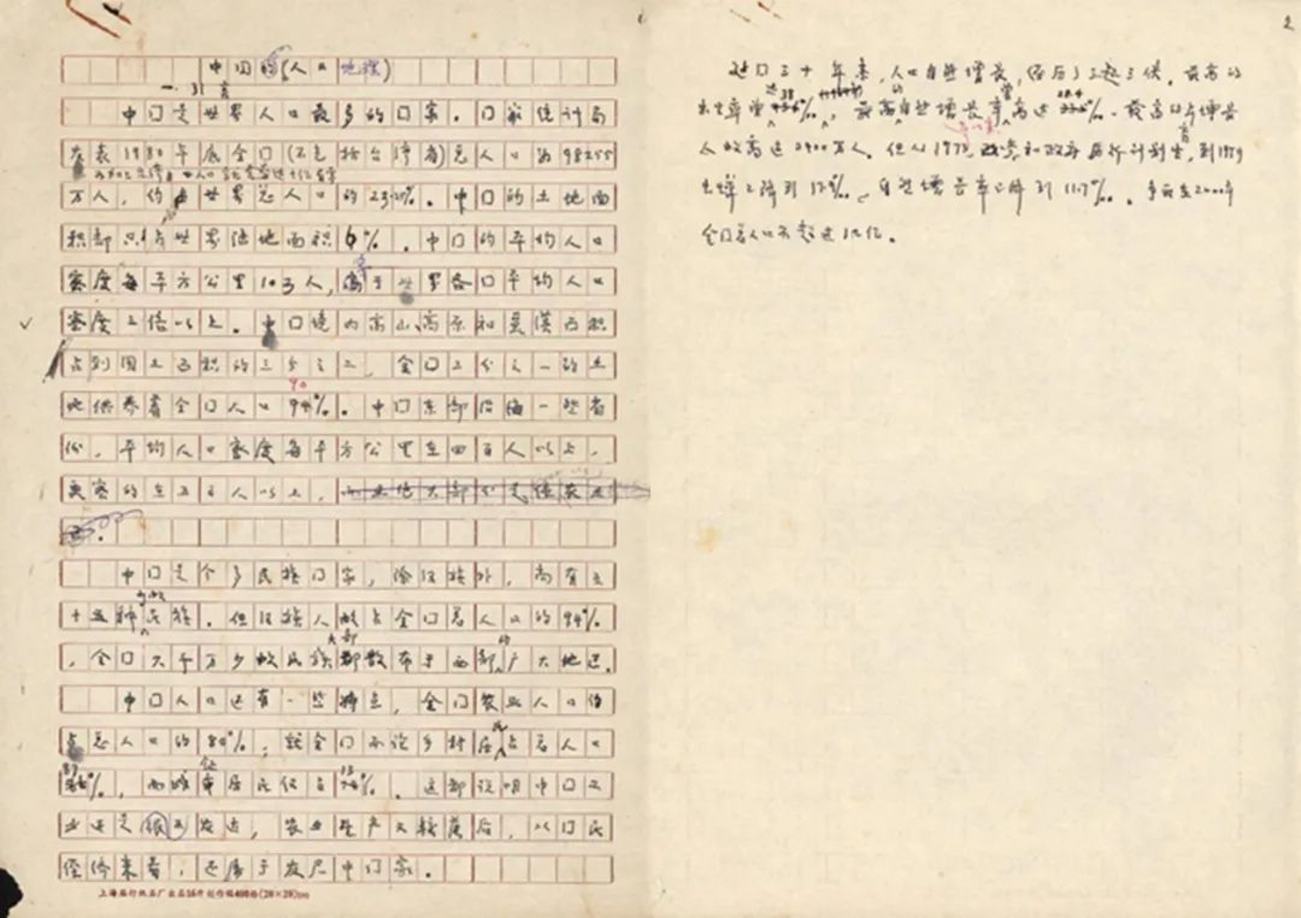胡焕庸《中国人口地理概要》底稿(前两页)