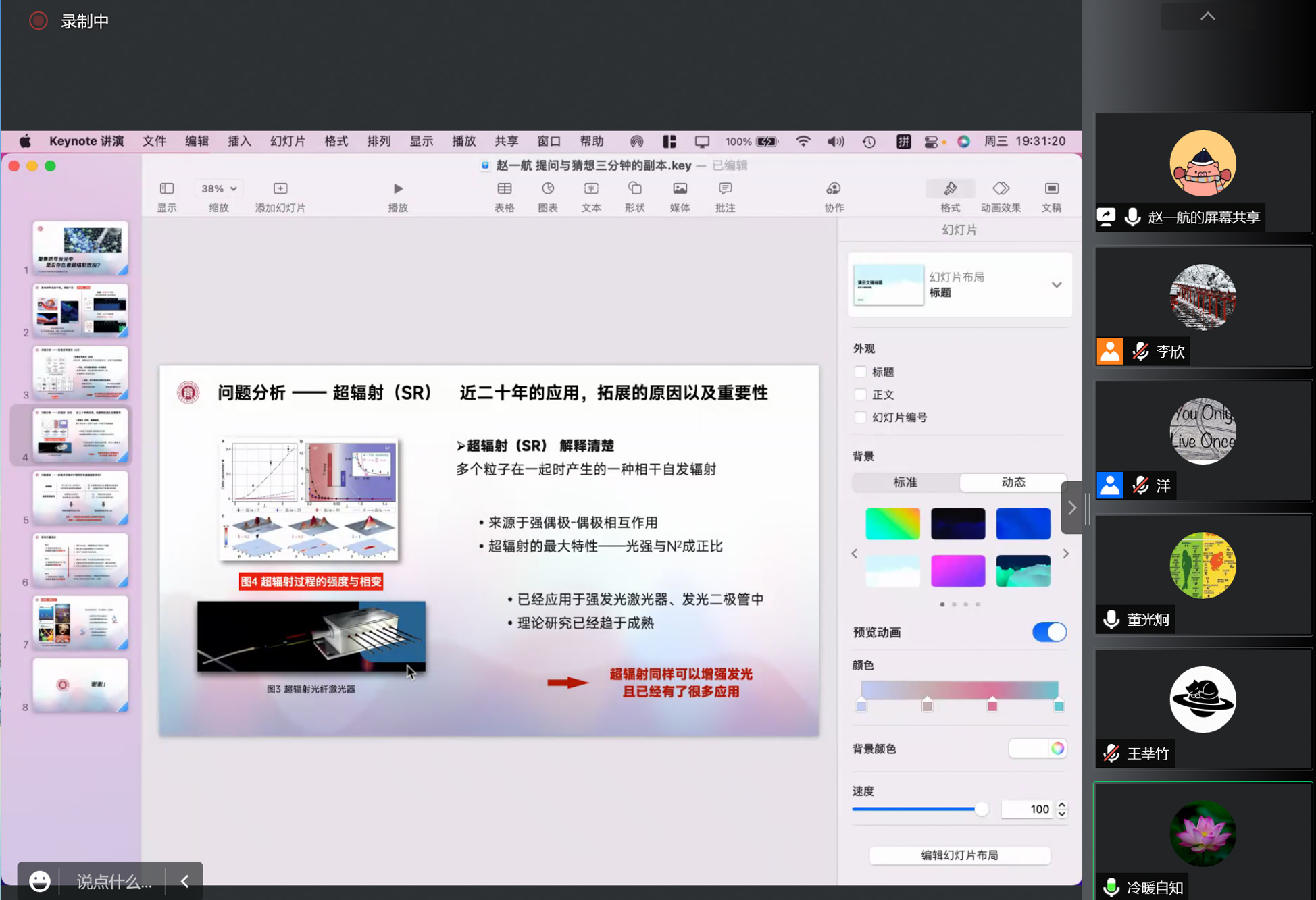 赵一航提出开展聚集诱导发光研究,经过多次和导师讨论,独辟蹊径把聚集诱导发光和量子光学的前沿超辐射结合起来,并搜集实验证据佐证自己的猜想。