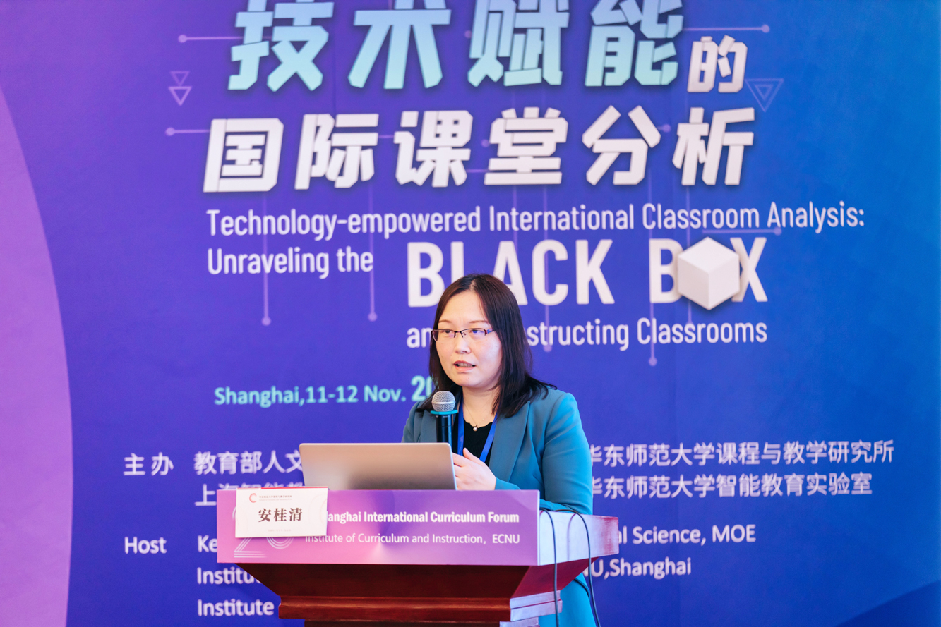 澳门永利皇宫官网入口课程与教学研究所安桂清教授作了题为“课堂形态分析及其重构:范式转换的视角”的报告,她首先进行了历史回溯,指出教学研究范式经历了从“过程-产出”“中介-过程”到“生态-文化”范式的进展,包含视频记录等方式的课堂观察逐渐代替了基于师生报告的问卷调查,课堂研究方式逐渐从“间接测量”向“直接研究”转换。人工智能为便捷化、规模化、非介入式的课堂整体形态研究提供了技术支撑,也为课堂研究带来了新的挑战。在此背景下,研究范式、研究与分析方法亟待转型,课堂的内容、活动与时空形态亟待重构。