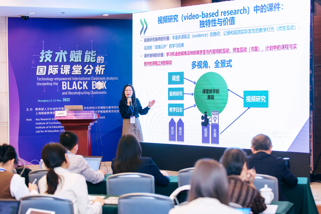 联合国教科文组织国际教师教育中心上海TALIS秘书处/研究中心专职研究人员,上海师范大学国际与比较教育研究院徐瑾劼副教授作了题为“课件视域下的教与学:打开课堂教学黑箱的另一种路径”的报告。课件是展示教师对学习机会的预期设计的窗口,报告聚焦视频研究中课件,通过课件呈现不同国家及地区单元教学设计中学习机会的质量。此外,报告还阐发了视频研究中课件评价的方法和技术,以期提出本土化的课件评价研究改进建议,如利用教育智能化发展促使课件评价成为教学改进手段,借鉴国际上的课件评价方式提升本地化研究的规范性与科学性,建构和开发适应中国特色的视频研究工具等。