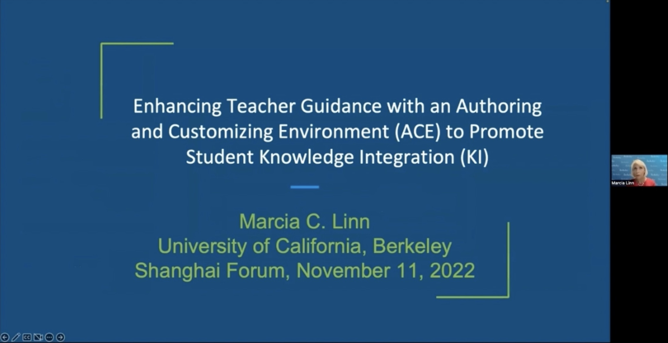 美国加州大学伯克利分校教育学院教学科学Evelyn Lois Corey讲席教授Marcia Linn以“Enhancing Teacher Guidance with an Authoring and Customizing Environment to Promote Student Knowledge Integration”(促进学生的知识整合:利用定制环境加强教师指导)为题,介绍了能够定制环境的教学系统(Authoring and Customizing Environment)如何帮助教师识别最需要帮助的学生,协调学生的学习任务并记录作业,根据作业记录定制教学,为学生的复杂科学主题学习提供自动化的指导。课程可视化工具(Curriculum Visualizer)则可作为辅助,使教师能够将其定制活动与知识整合的教学法相统一。