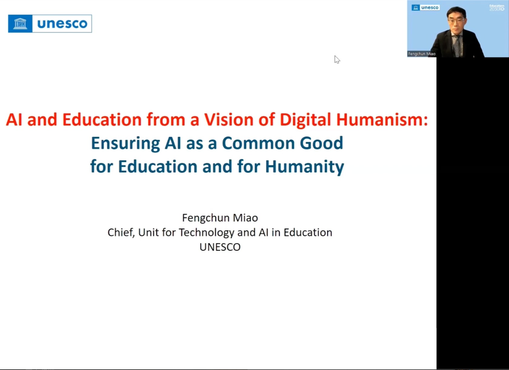 联合国教科文组织总部教育信息化与人工智能教育应用部门主任苗逢春