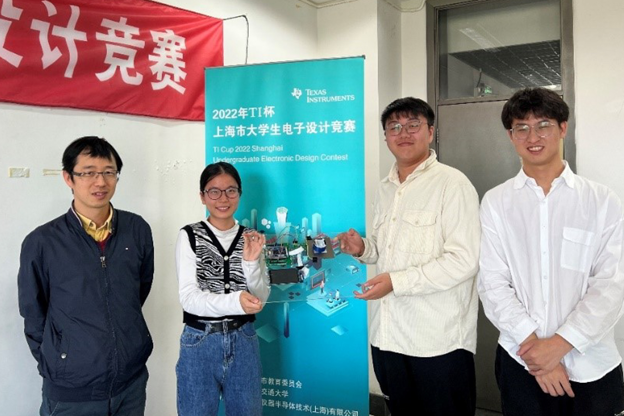 从左至右:指导老师金豫,队员黄丝敏、董海川、万海缘