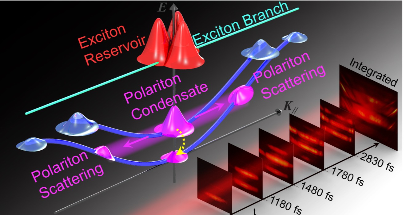 该论文基于自主发展的飞秒角分辨成像技术,实现了激子极化激元室温凝聚动力学的飞秒时间分辨测量,揭示了氧化锌回音壁微腔中激子极化激元的玻色级联行为和参量散射超快动力学。