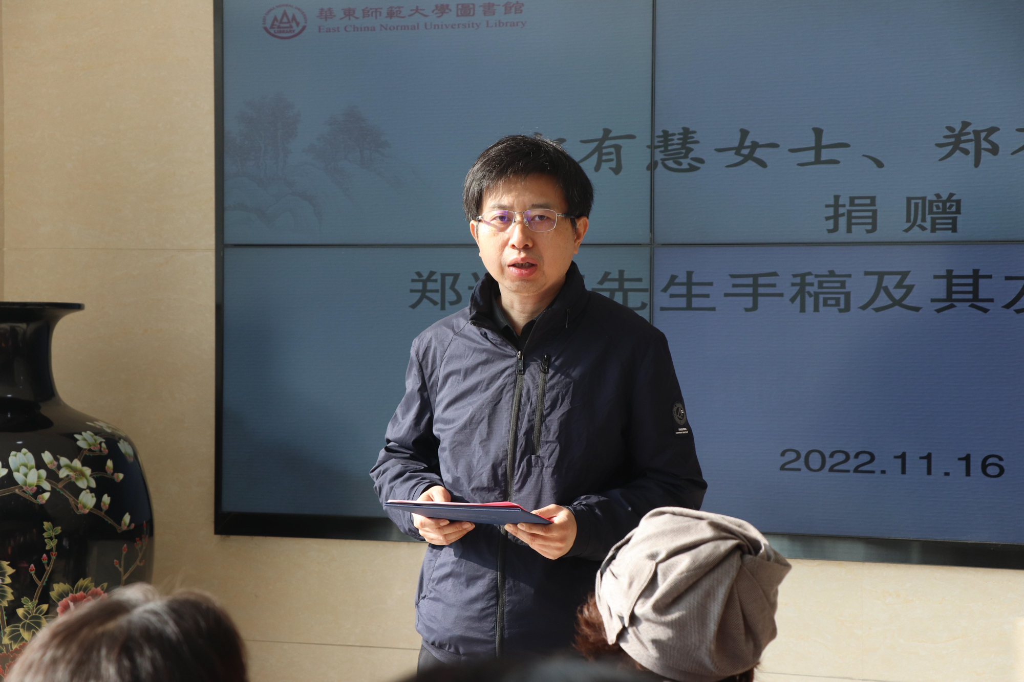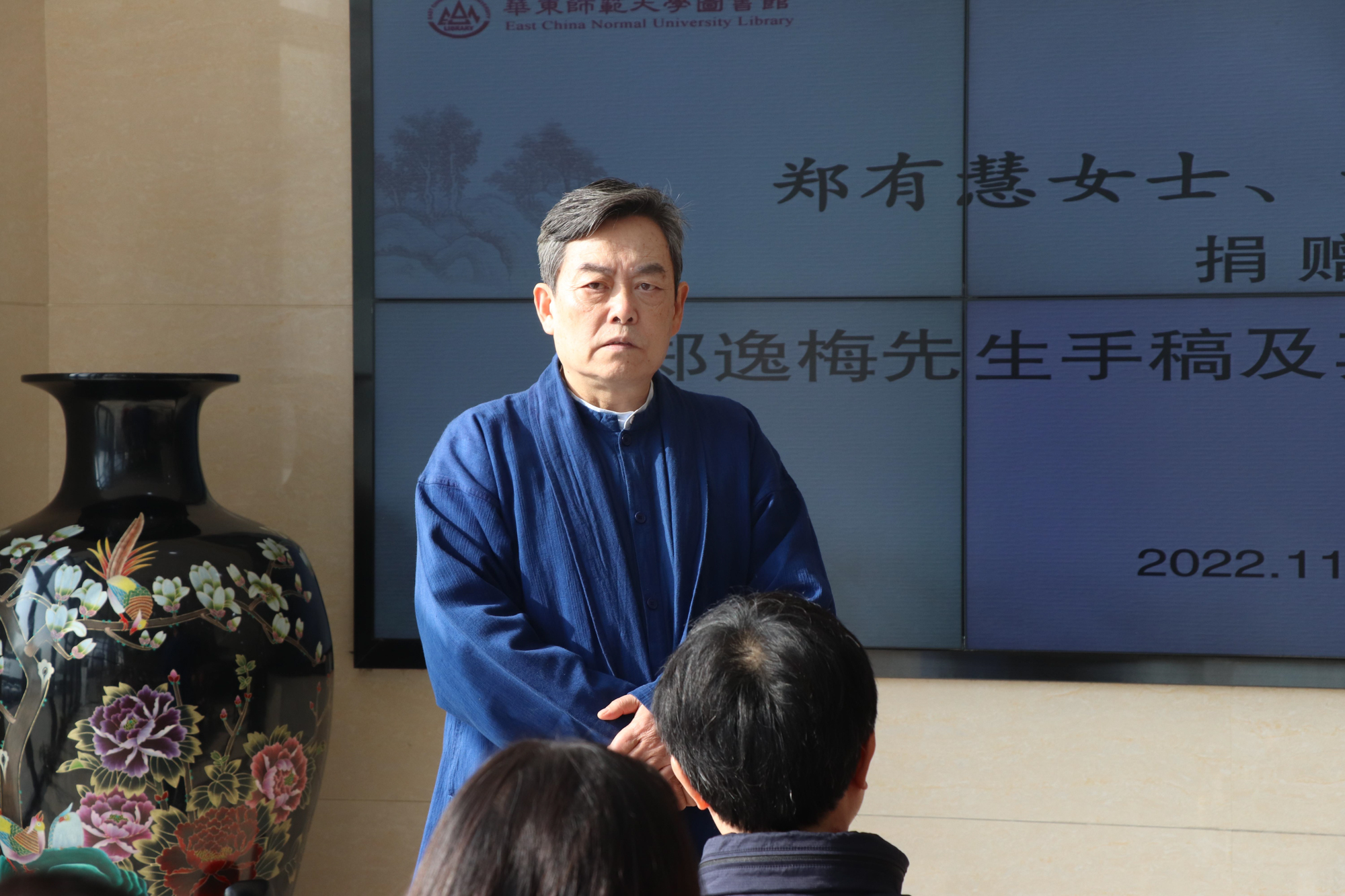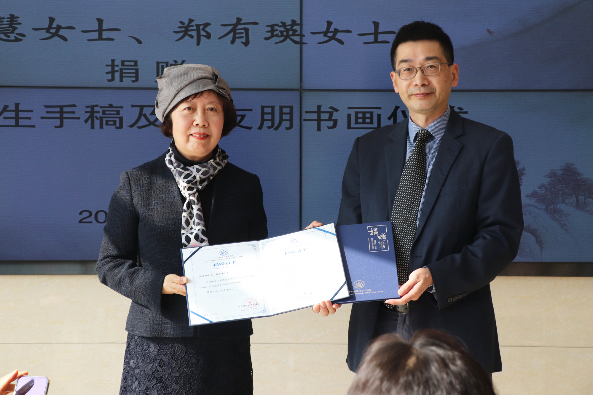 11月16日上午,“郑有慧女士、郑有瑛女士捐赠郑逸梅先生手稿及其友朋书画”仪式在华东师大普陀校区图书馆举行。郑逸梅先生之孙女、华东师大美术学院1986级校友、海上著名画家郑有慧女士,副校长顾红亮,图书馆馆长胡晓明,中文系古籍研究所教授丁小明等出席了捐赠仪式。