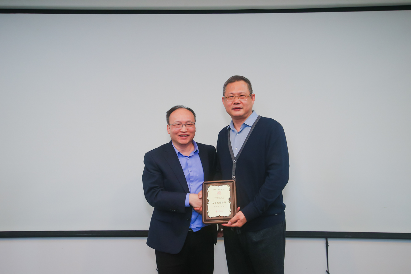 生命科学学院院长翁杰敏向何红章校友颁发“人生发展导师”聘书