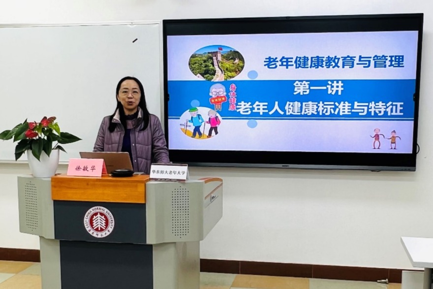华东师大老年大学开设的《老年健康教育与管理》通识课程共分三讲,包括老年人健康标准与健康管理、常见老年慢性病的预防与管理、老年传染病预防与舒缓疗护,由华东师大医学与健康研究院副院长徐敏华副教授和汪南平教授共同主讲。