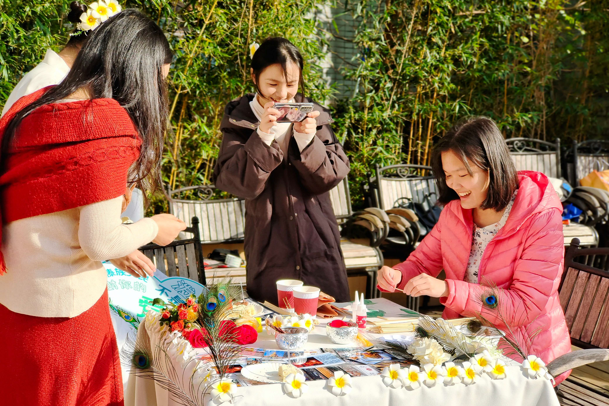 本次民族文化交流节展台游园会共设置12个民族文化展台,包括维吾尔族、藏族、壮族、哈萨克族、朝鲜族、满族、蒙古族、傣族、苗族、侗族、彝族和塔吉克族,由第二期少数民族骨干“君远班”的同学们发动身边同民族的同学共同设计完成。