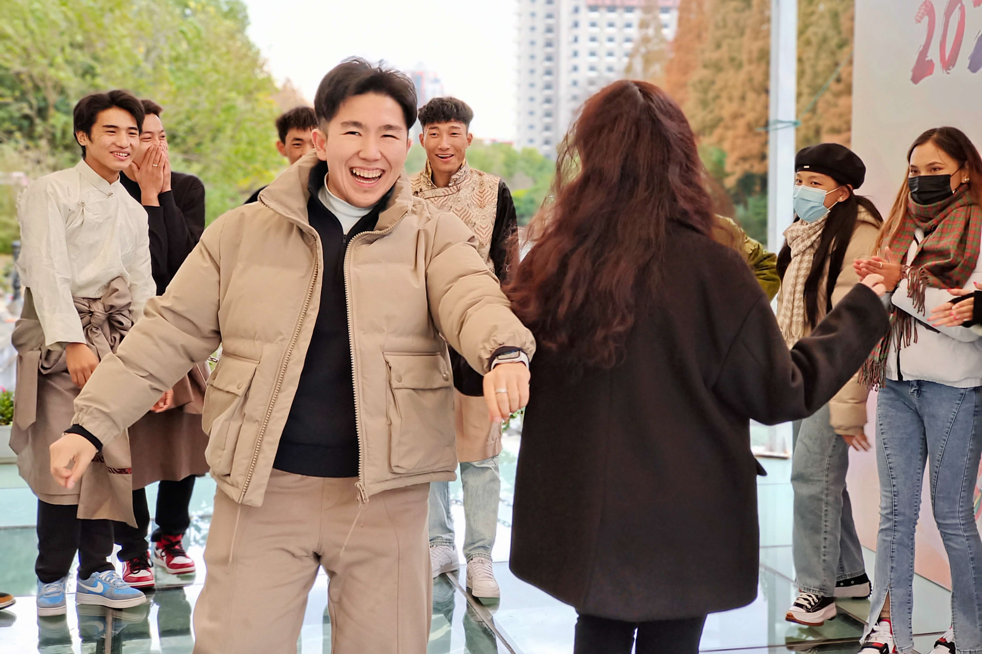 少数民族预科班的同学们用一支极富少数民族特色的舞蹈《葡萄架下的篝火》带动了全场的热烈气氛,灵动且极具感染力的舞步为整个活动奠定了欢乐的基调。