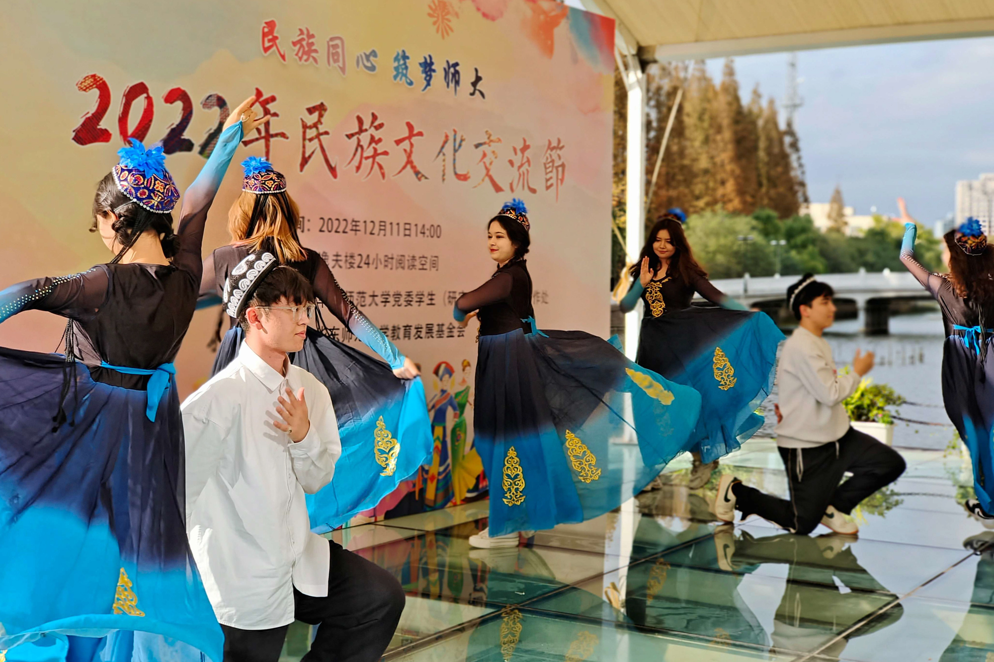 民族一家亲,最炫民族风!澳门永利皇宫官网入口2022年民族文化交流节今天在丽娃河畔举行。活动以“民族同心·筑梦师大”为主题,将少数民族特色演出、民族文化展台游园会紧密融合,各民族同学们展现民族文化特色,在文化交流体验的过程中,共绘民族团结奋进的同心圆。