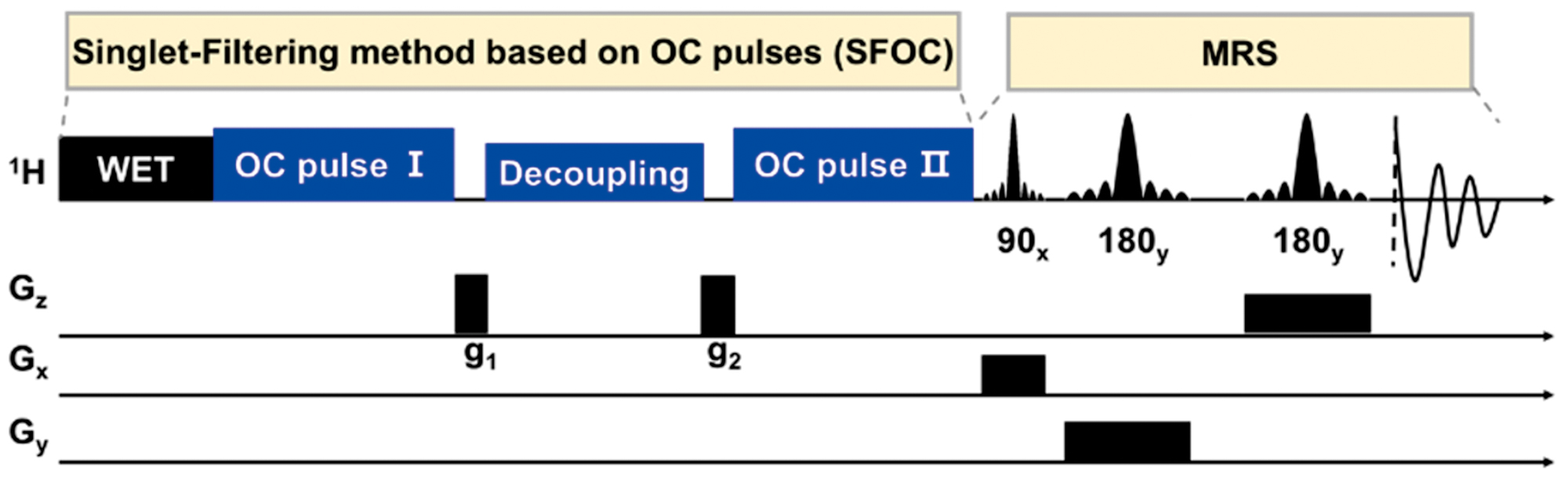 图1. Glu/Gln分子靶向磁共振脉冲序列示意图。