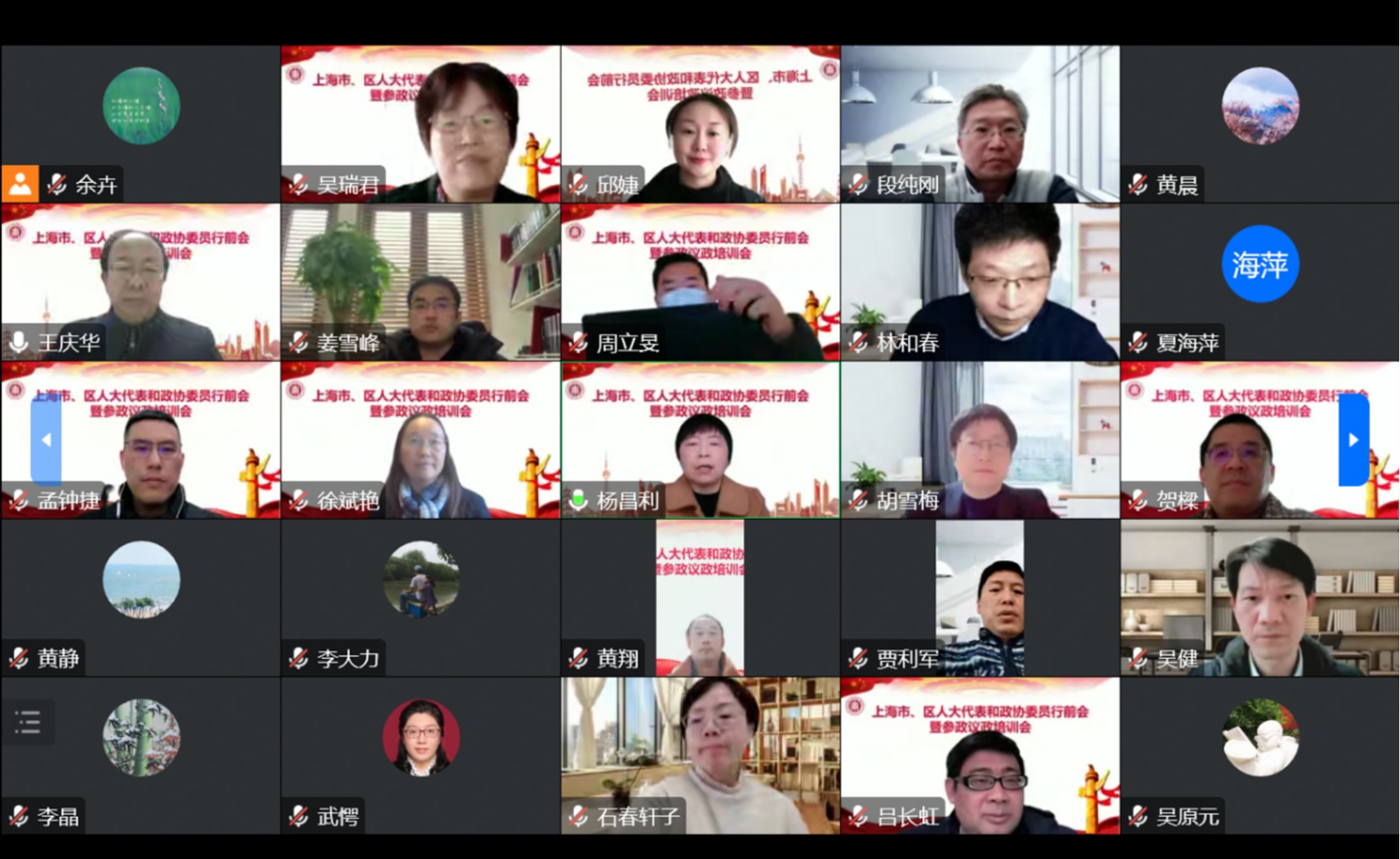 为了帮助代表委员提高履职能力,更好担负起新时代人大代表、政协委员的使命责任,12月29日下午,我校在线举行上海市、区人大代表和政协委员行前会暨参政议政培训会。校党委副书记杨昌利出席并讲话,会议由校党委常委、统战部部长兼机关党委书记王庆华主持。市、区人大代表和政协委员近30人参加会议。