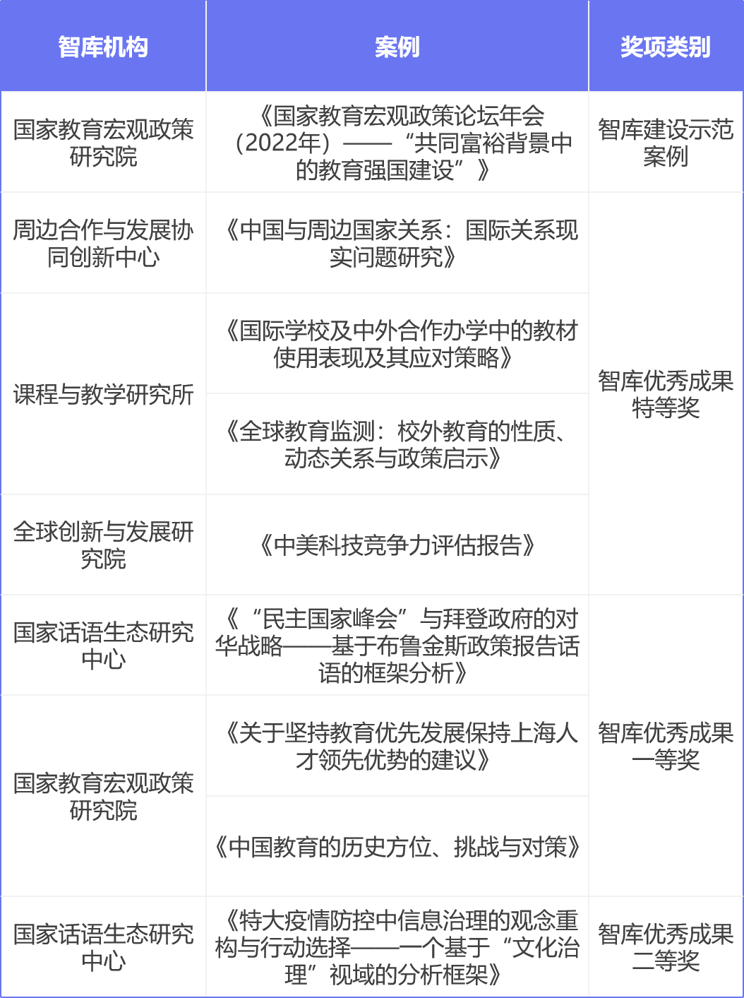 华东师大CTTI2022年度智库最佳案例和优秀成果