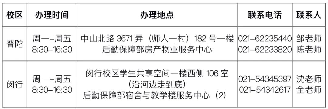 学生公寓管理:62232781(普陀)54345233(闵行)
