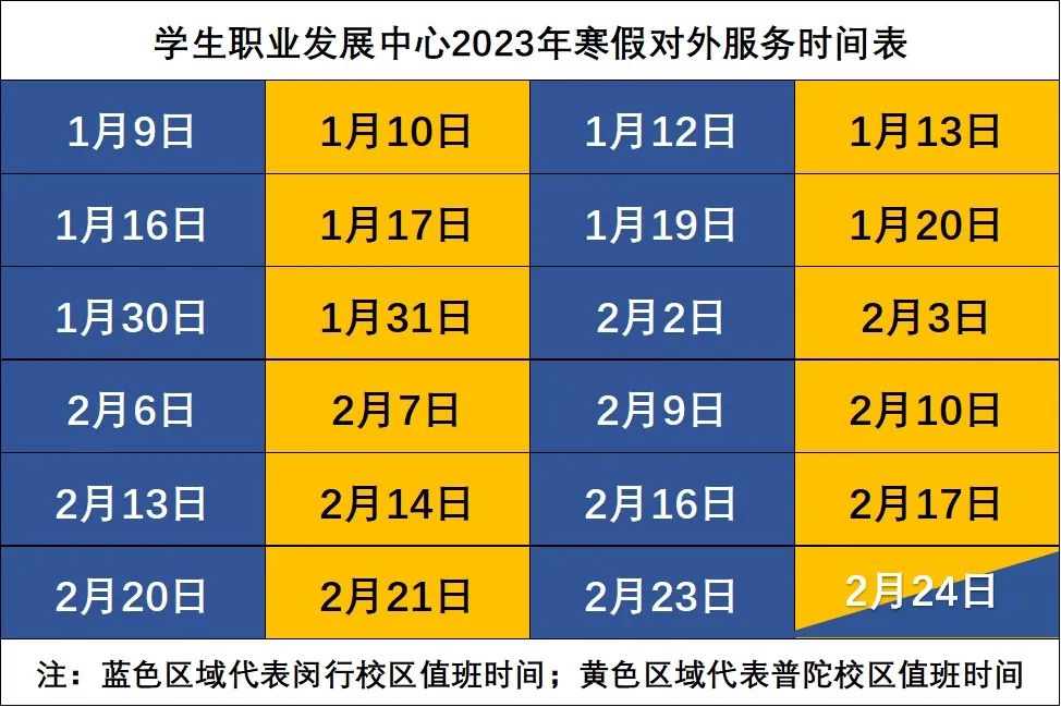 校学生职业发展中心寒假期间将提供对外服务,具体安排如下:
