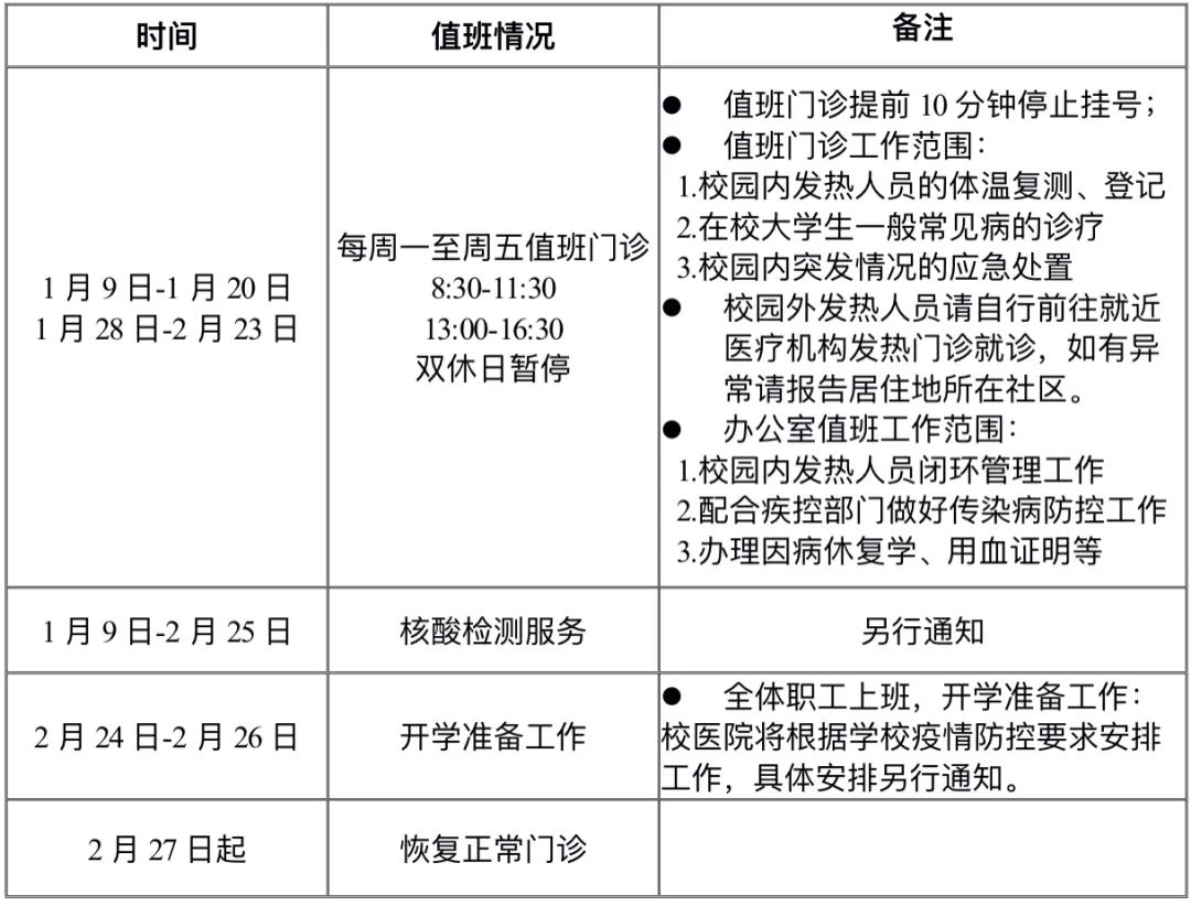 5.2月27日(周一)起,校医院恢复正常门诊(视学校疫情防控情况,另行通知)。