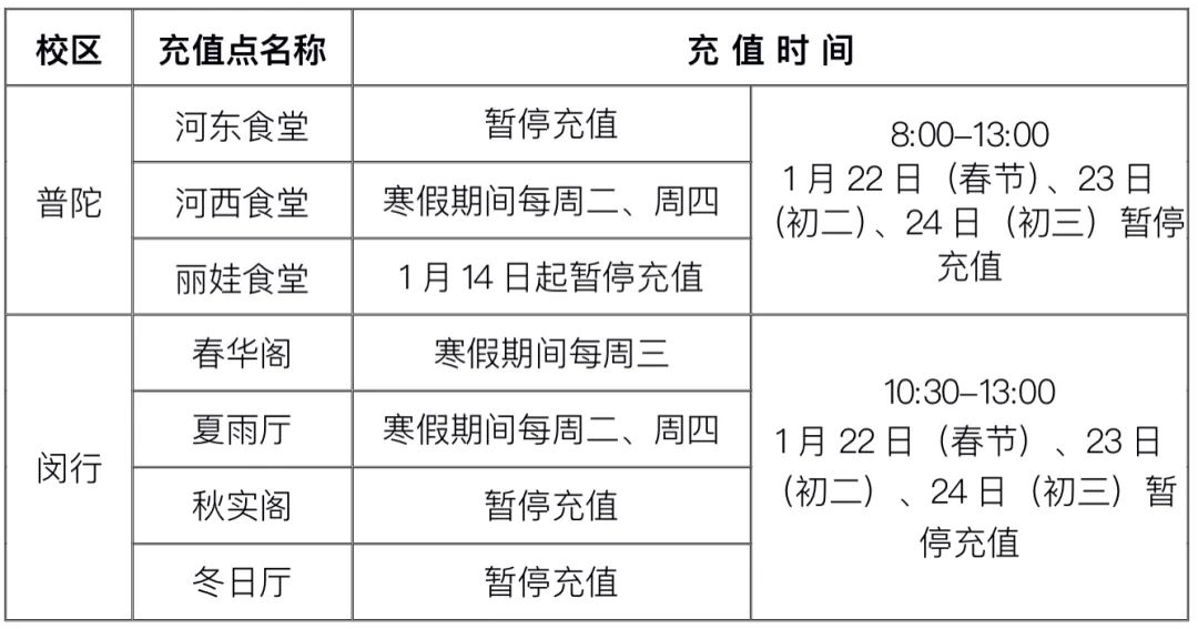服务联系电话:普陀校区:62232272;闵行校区:54345052。