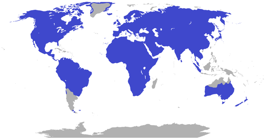 现存兔形目在全世界的分布