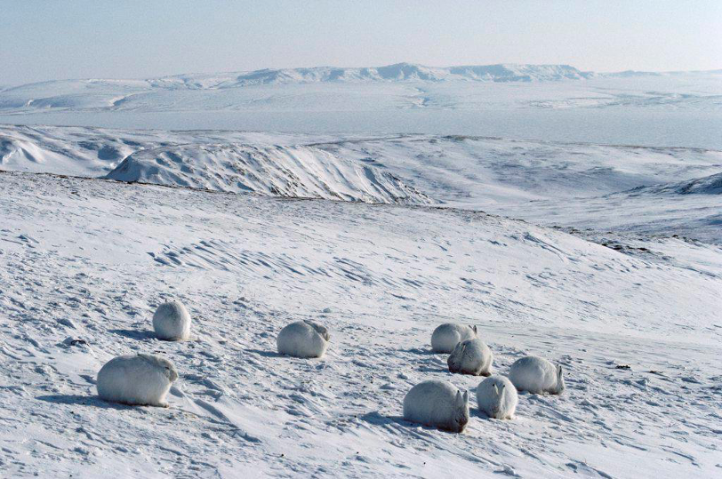 北极兔的北极地区寒冷的冬季还会集群