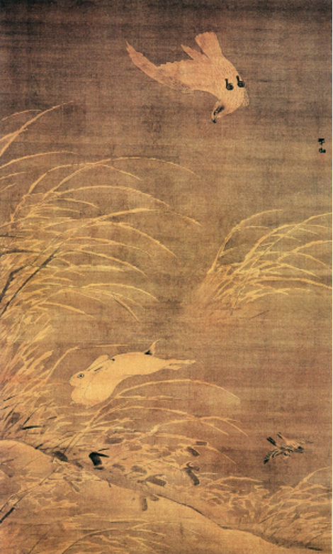 明代画家张路创作的《苍鹰攫兔图》,注意看这只白兔的眼睛