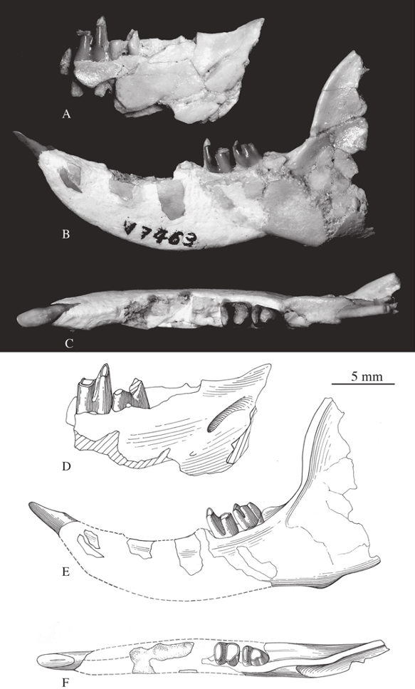 远古道森兔化石的颌骨与牙齿