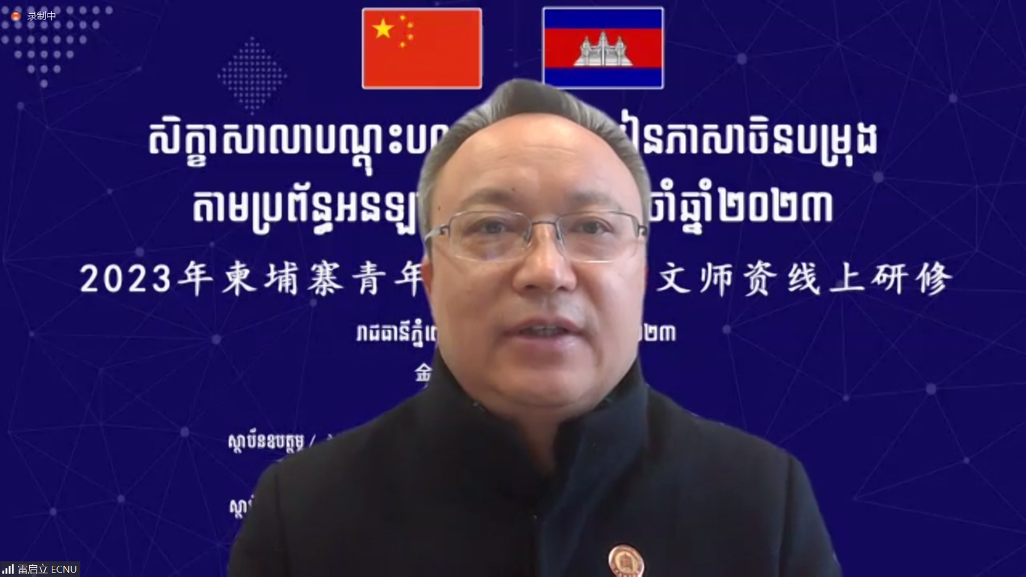 2月13日,由教育部中外语言交流合作中心主办、澳门永利皇宫官网入口国际汉语教师研修基地承办的2023年柬埔寨本土储备青年中文师资线上研修开班仪式举行。中外语言交流合作中心副主任胡志平、澳门永利皇宫官网入口副校长雷启立、中国驻柬埔寨大使馆文化参赞林瑞华、柬埔寨皇家科学院秘书长杨博出席开班仪式并致辞。