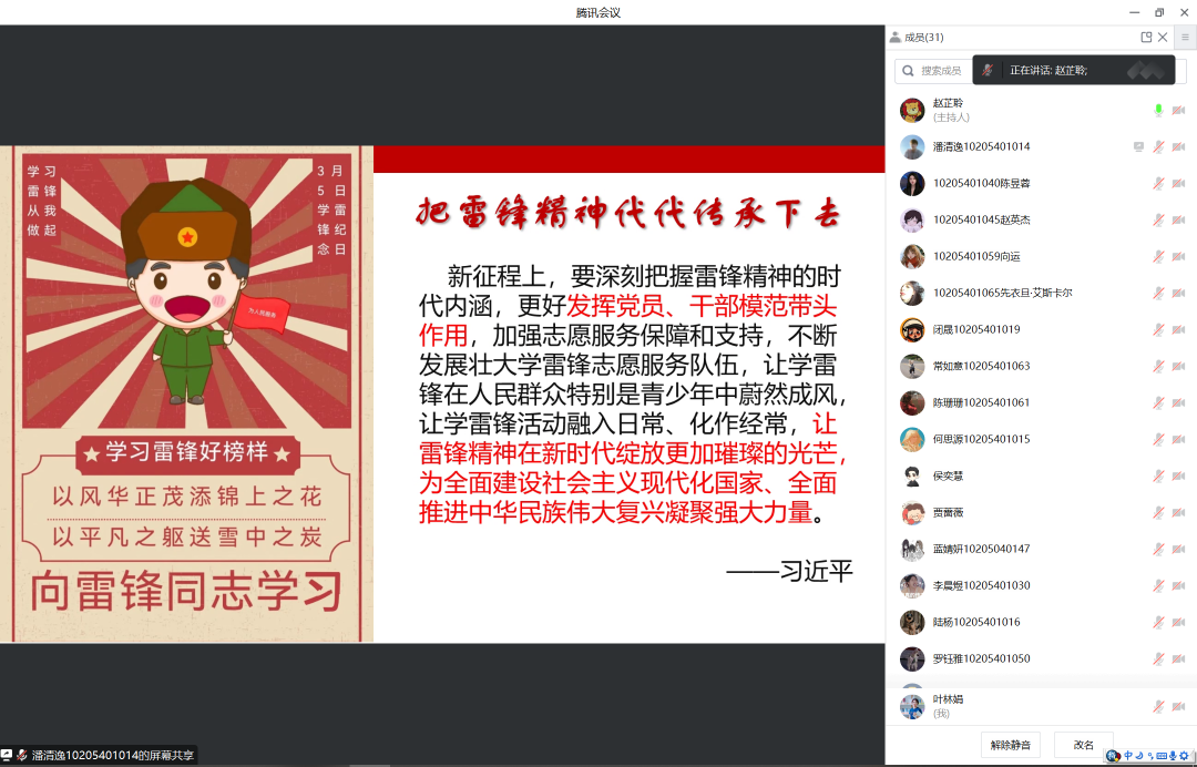 华东师大青年学子深刻领会雷锋热爱党、热爱祖国、热爱社会主义的崇高理想和坚定信念,服务人民、助人为乐的奉献精神,干一行爱一行、专一行精一行的敬业精神,锐意进取、自强不息的创新精神,艰苦奋斗、勤俭节约的创业精神的思想内涵,以系统深入的学习,向上向善的行动传承雷锋精神,彰显青年力量!