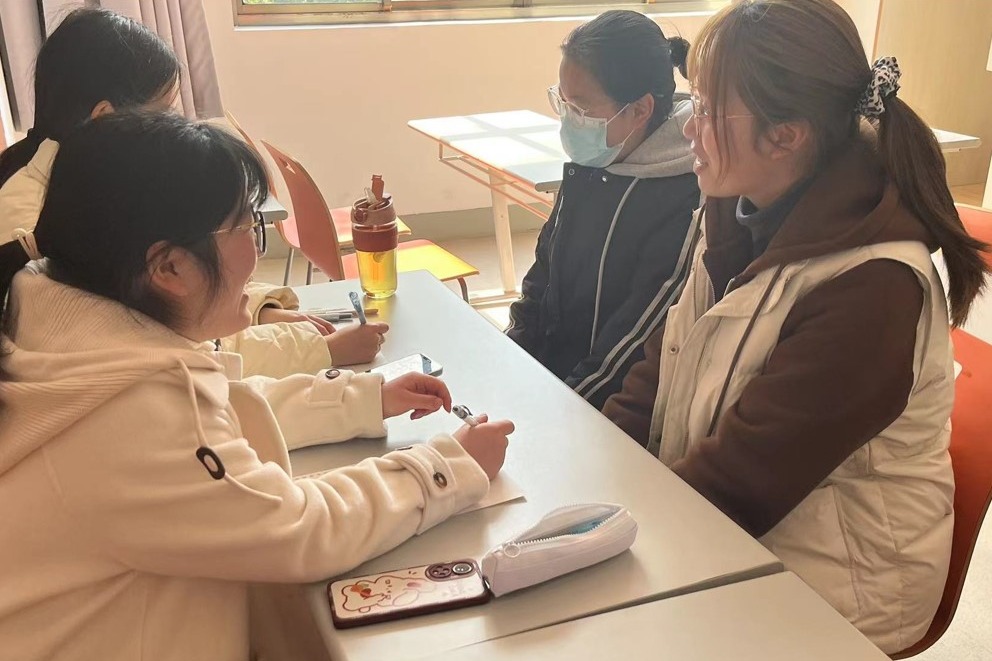 “你们好,我是巴桑多旦。嗯……然后……”他有些拘谨,双手不安地在腿上摩挲,腼腆地笑着,真挚地用眼神交流。虽然巴桑同学小学就开始学习汉语,但受小升初、中高考招生制度影响导致汉语教学局限于课堂和书本知识,缺少实际运用语言的环境,所以在自我介绍时并不自信。不仅是巴桑,西藏当地的很多学生都有着同样的问题。