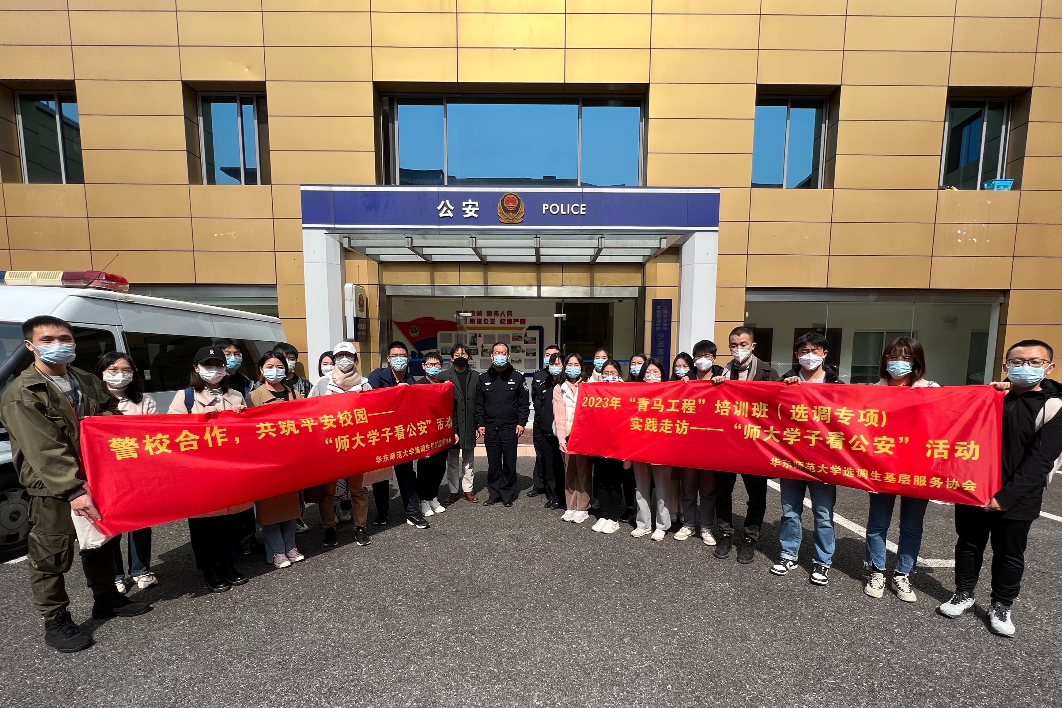 3月5日,“青马工程”选调生训练营举办“学雷锋 看公安”实践活动,彰显青春风采,弘扬雷锋精神,22名师生参访到上海市公安局高校文保分局沪西派出所、上海市公安局警犬基地。加强警校联系,实现高校内外联动,拓展学生实践基地,提升学生社会实践意识。采访为百姓兢兢业业服务的人民警察,加深对雷锋精神的理解。