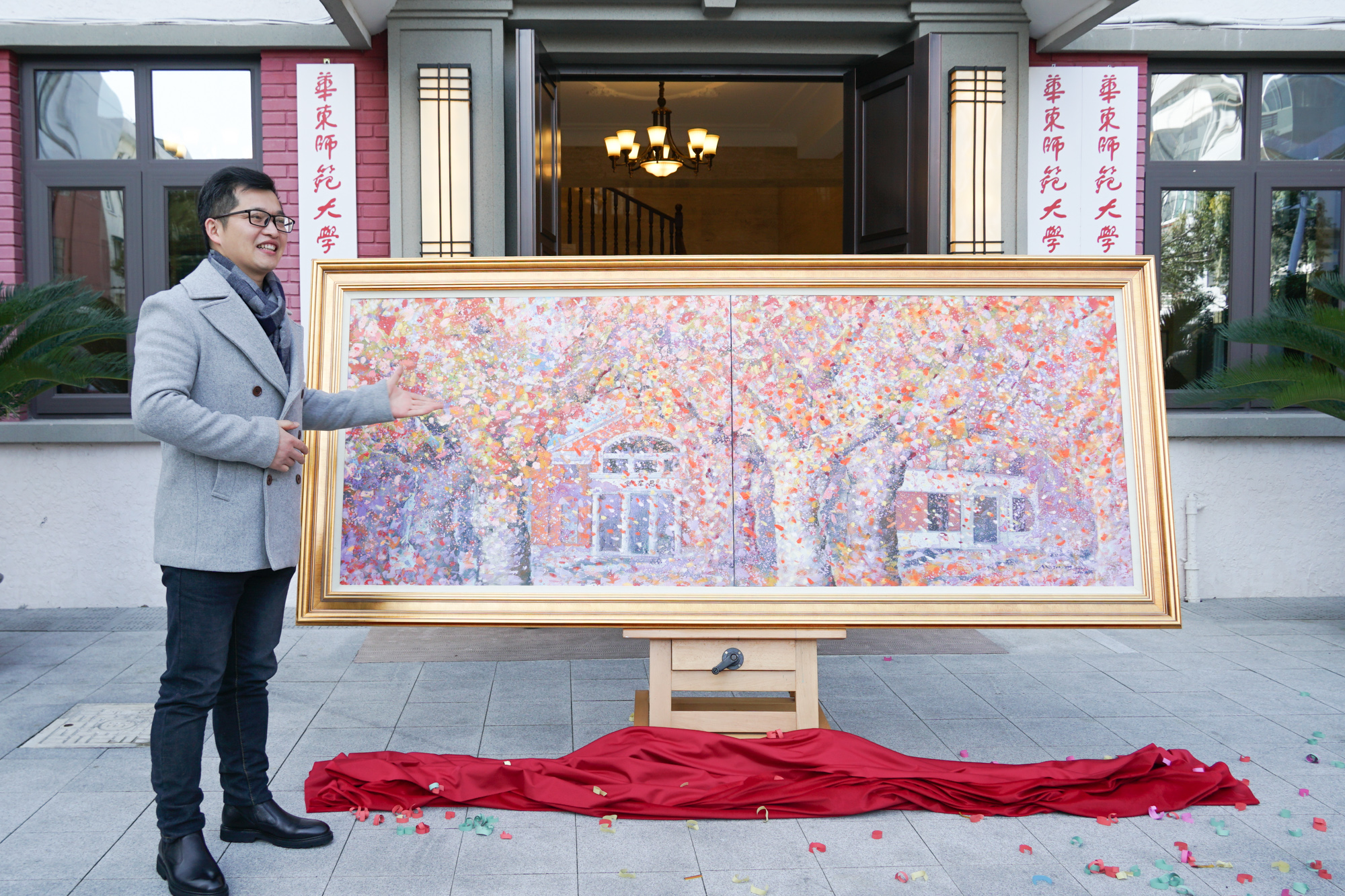 在庆祝华东师大工会成立70周年和校工会回迁两周年之际,校工会收到了一份特殊的礼物——来自青年画家、美术学院工会主席、硕士研究生导师马俊营创作的一幅油画作品。日前,校工会举办了简短的油画揭幕仪式。校党委副书记、工会主席杨昌利,美术学院相关负责人以及部分校工会两委委员受邀出席。