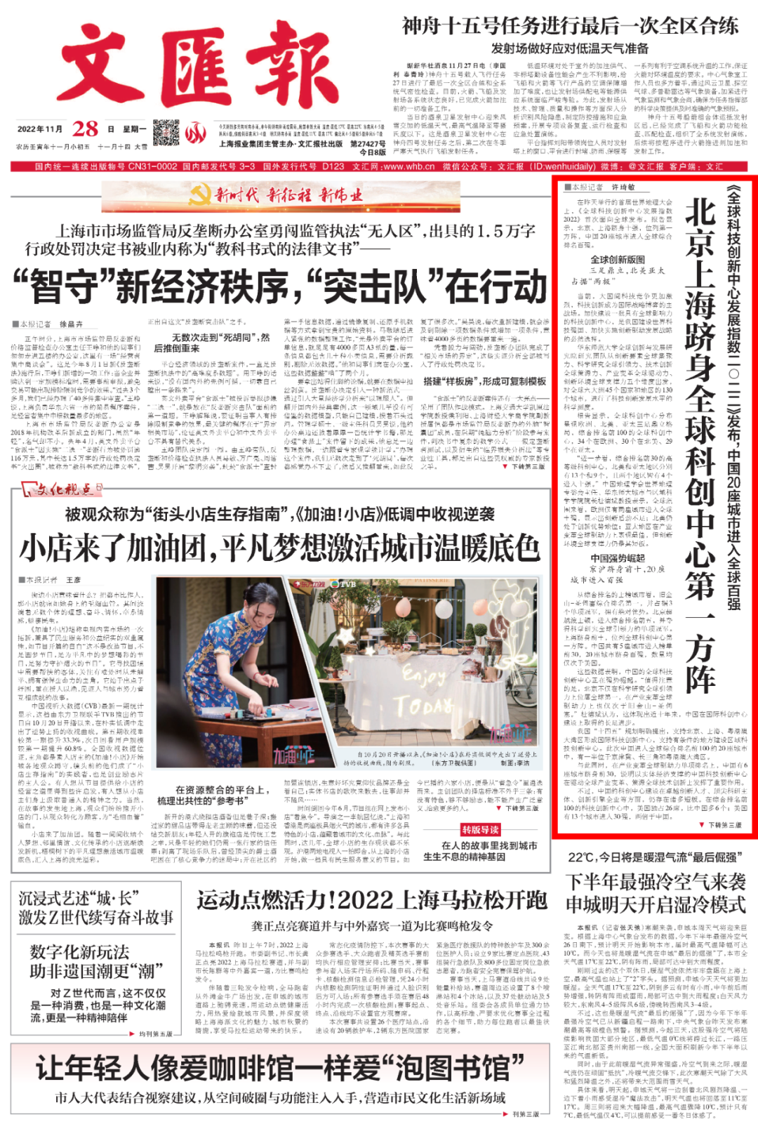 《文汇报》11月28日 头版