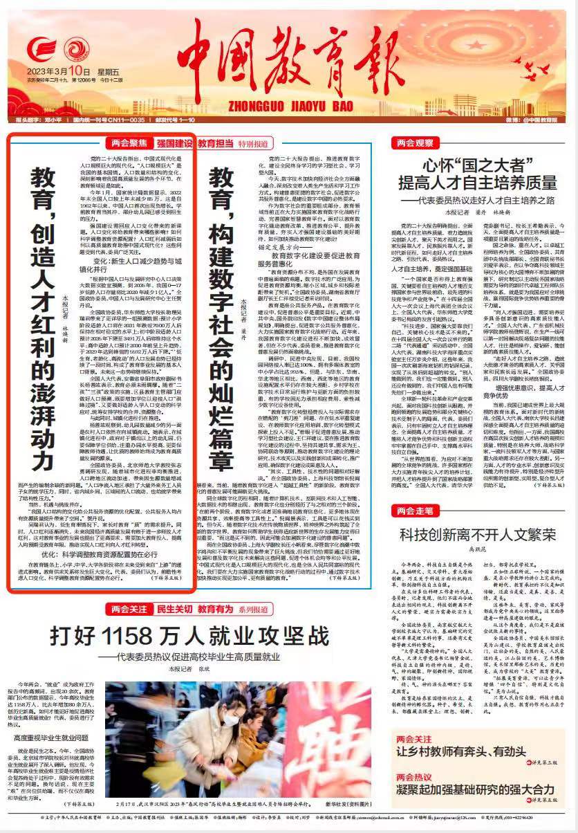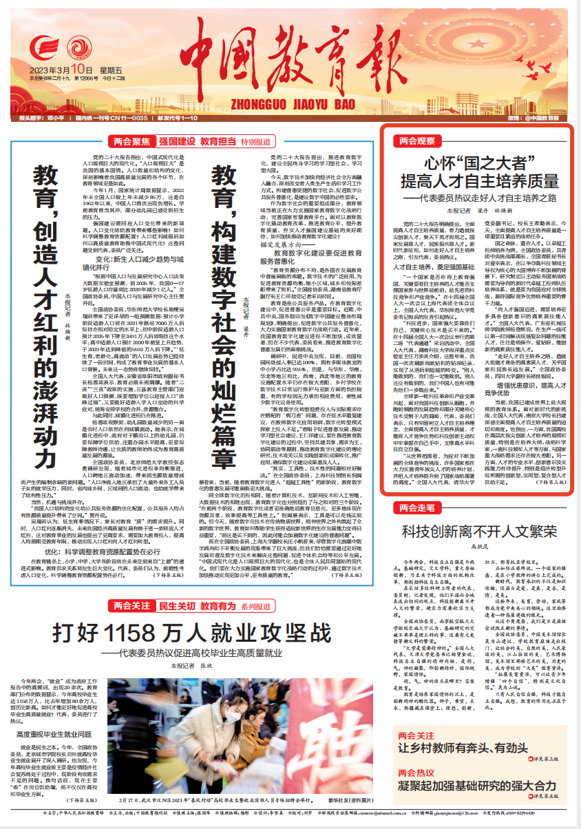 中国教育报丨心怀“国之大者” 提高人才自主培养质量——代表委员热议走好人才自主培养之路