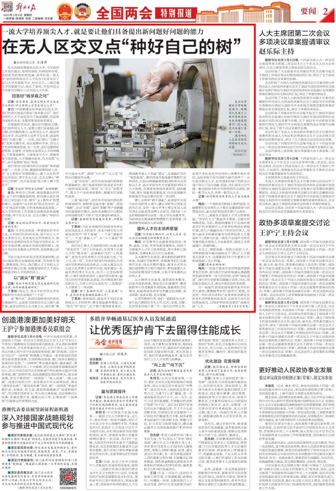 联合时报 头版丨以昂扬精神状态踏上履职新征程 新任在沪全国政协委员赴京参会,表示将用高质量的履职成果交出高质量的“委员作业”