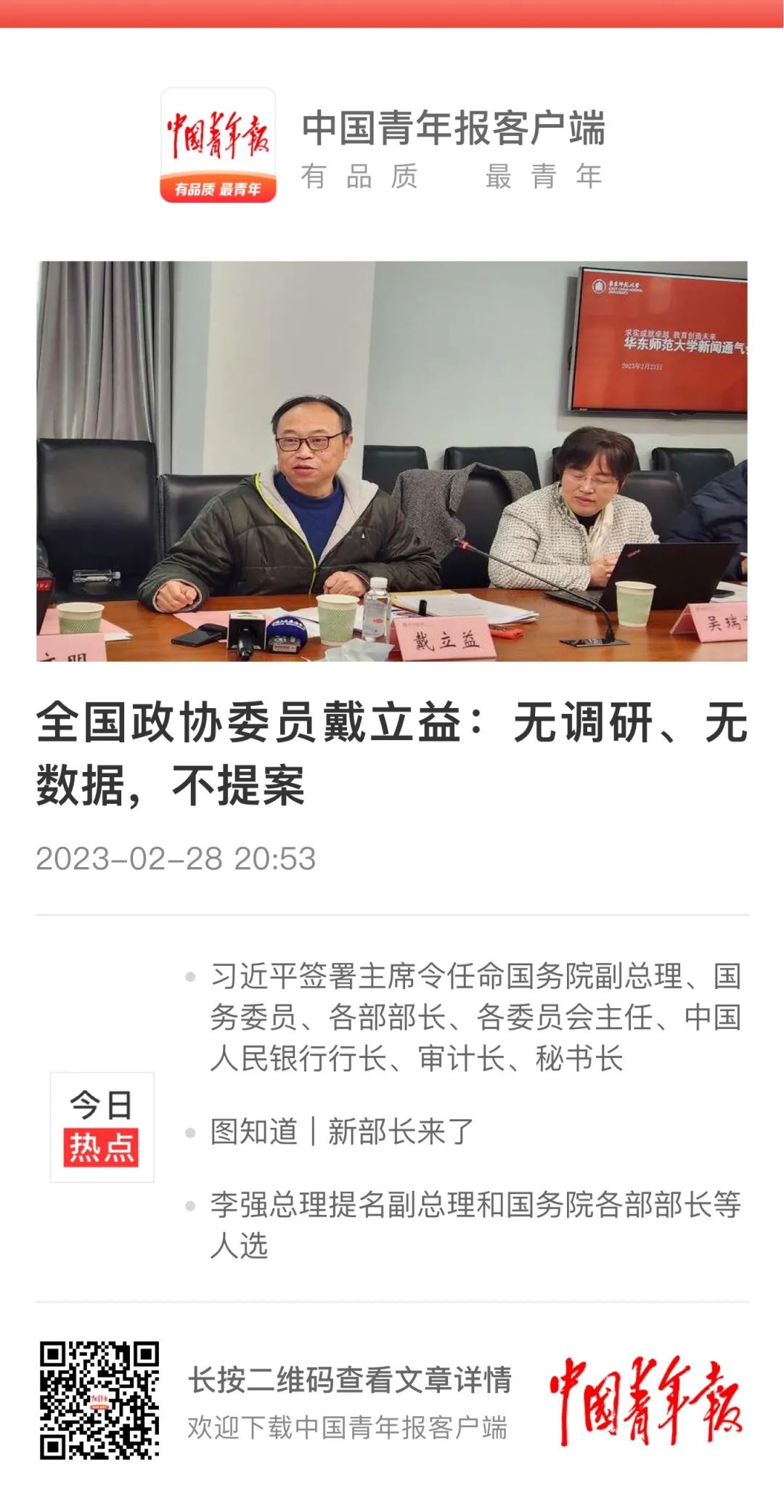 中国青年报客户端丨全国政协委员戴立益:无调研、无数据,不提案