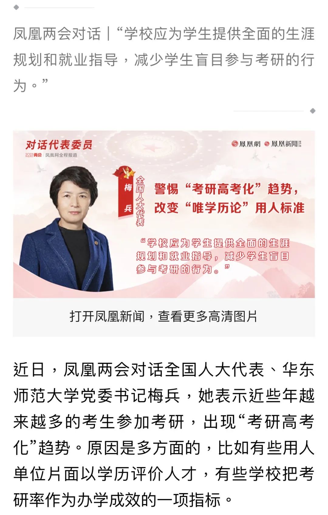 凤凰新闻丨人大代表梅兵:警惕“考研高考化”趋势