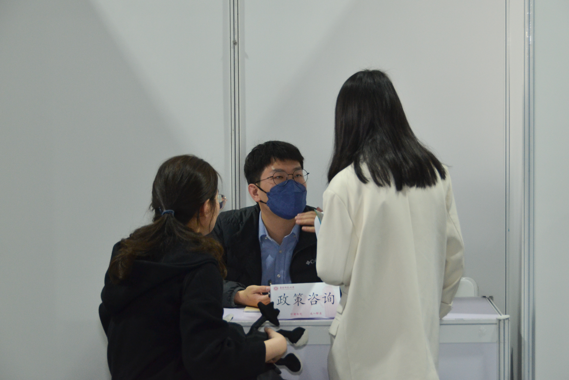 招聘会在入口处开设了政策咨询和简历指导展位,邀请资深专家来为同学现场答疑解惑,提供就业政策、简历和面试的指导与咨询。面对前来咨询的毕业生,老师们根据学生的情况和应聘岗位,对简历提出针对性的指导建议,同时帮助毕业生了解最新政策、就业形势,提高求职技巧。