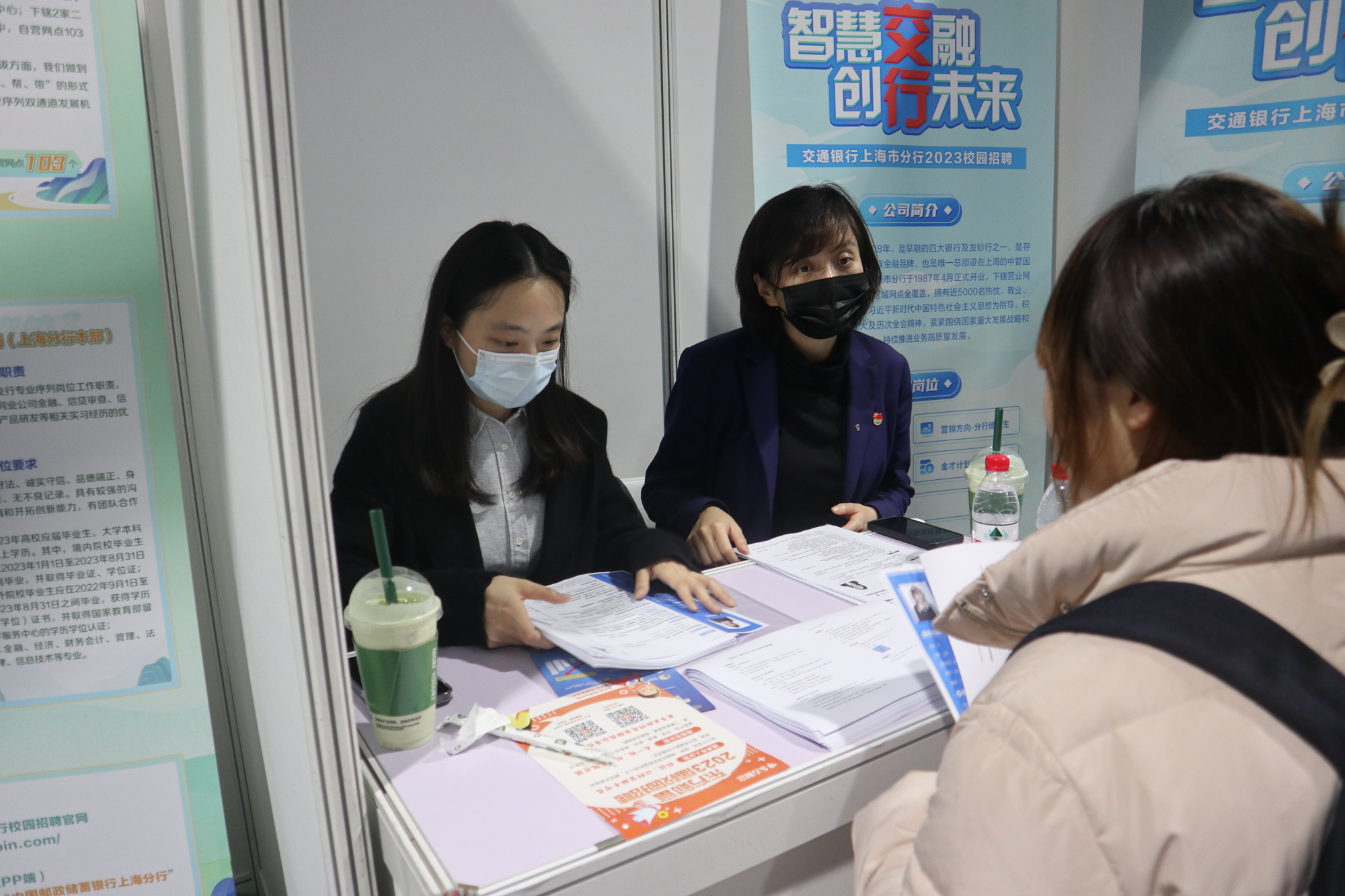 招聘单位工作人员表示:“这是疫情后第一次参加华东师大校园线下双选会,感受到了学生们的求职热情”。同时,工作人员也提醒学生,“单位在招聘面试时会特别关注:求职者待人接物的方式,沟通时展现出来的知识储备、思维的完整性,以及大家思考问题的方向。”